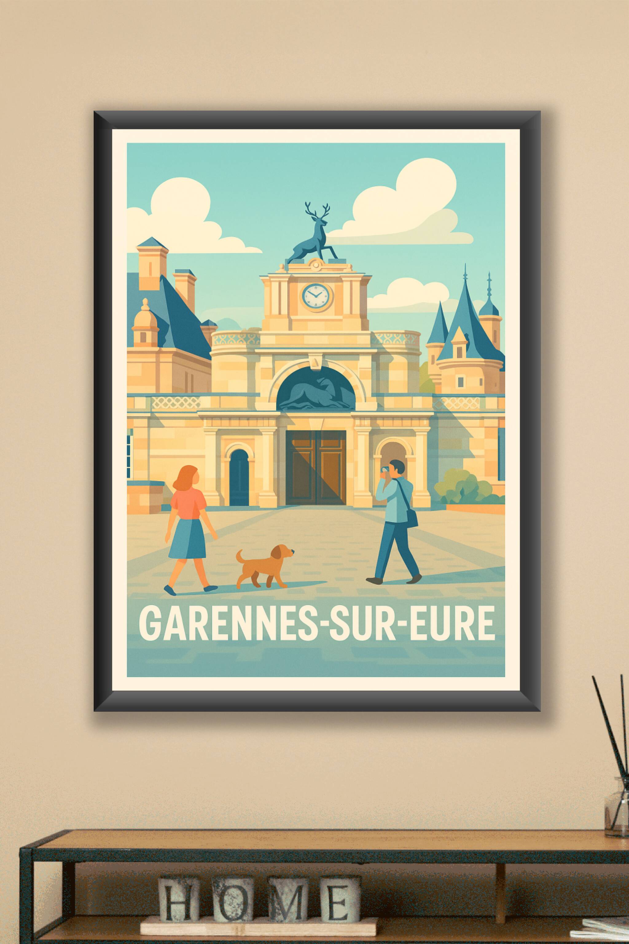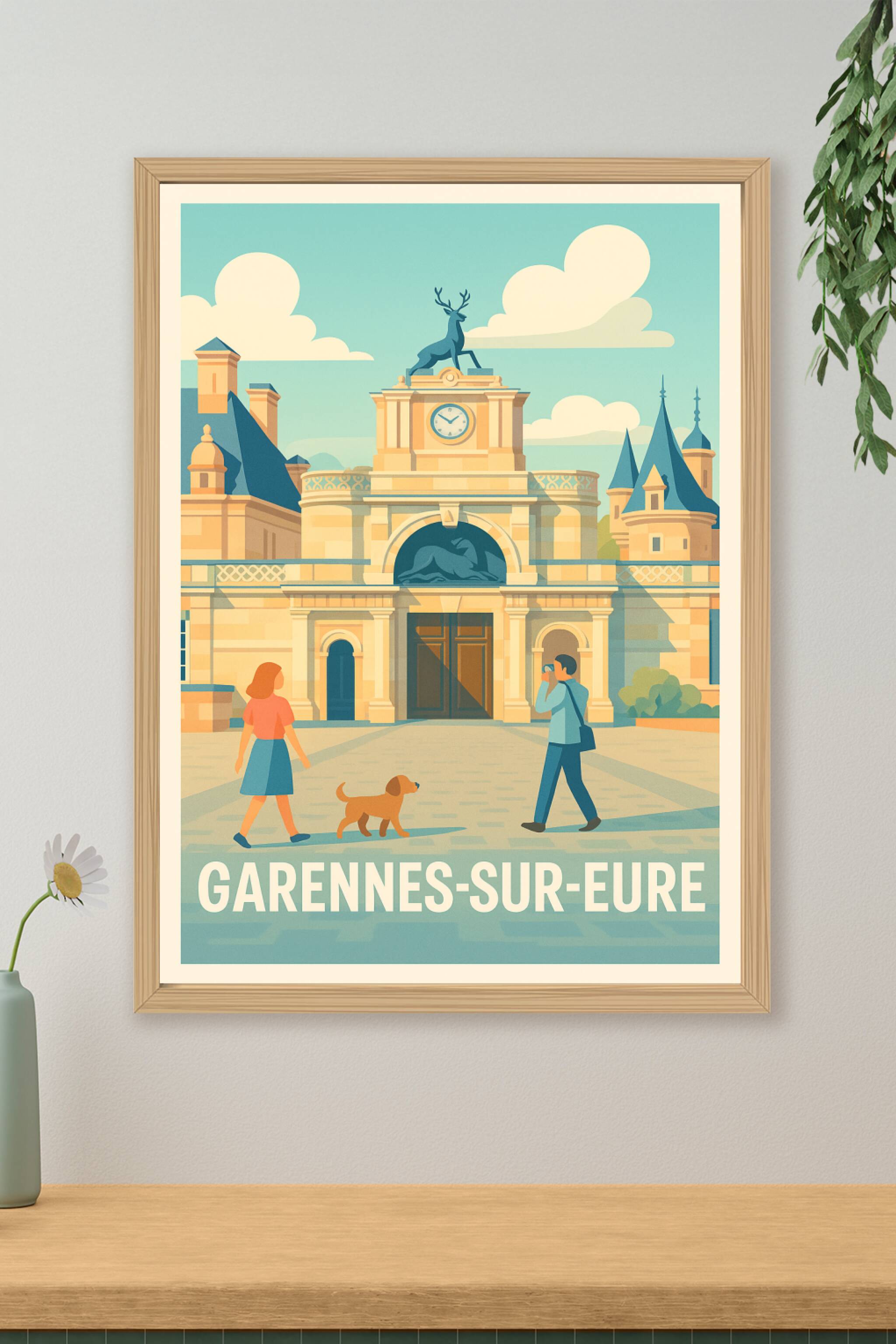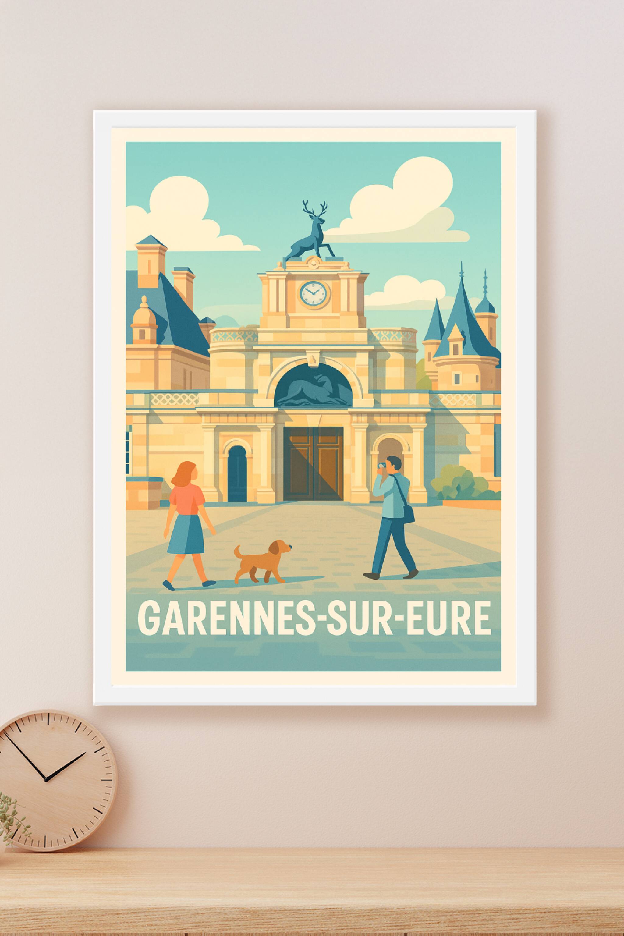 Découvrez le charme intemporel de Garennes-sur-Eure à travers cette affiche illustrée qui met en lumière le patrimoine architectural emblématique d...