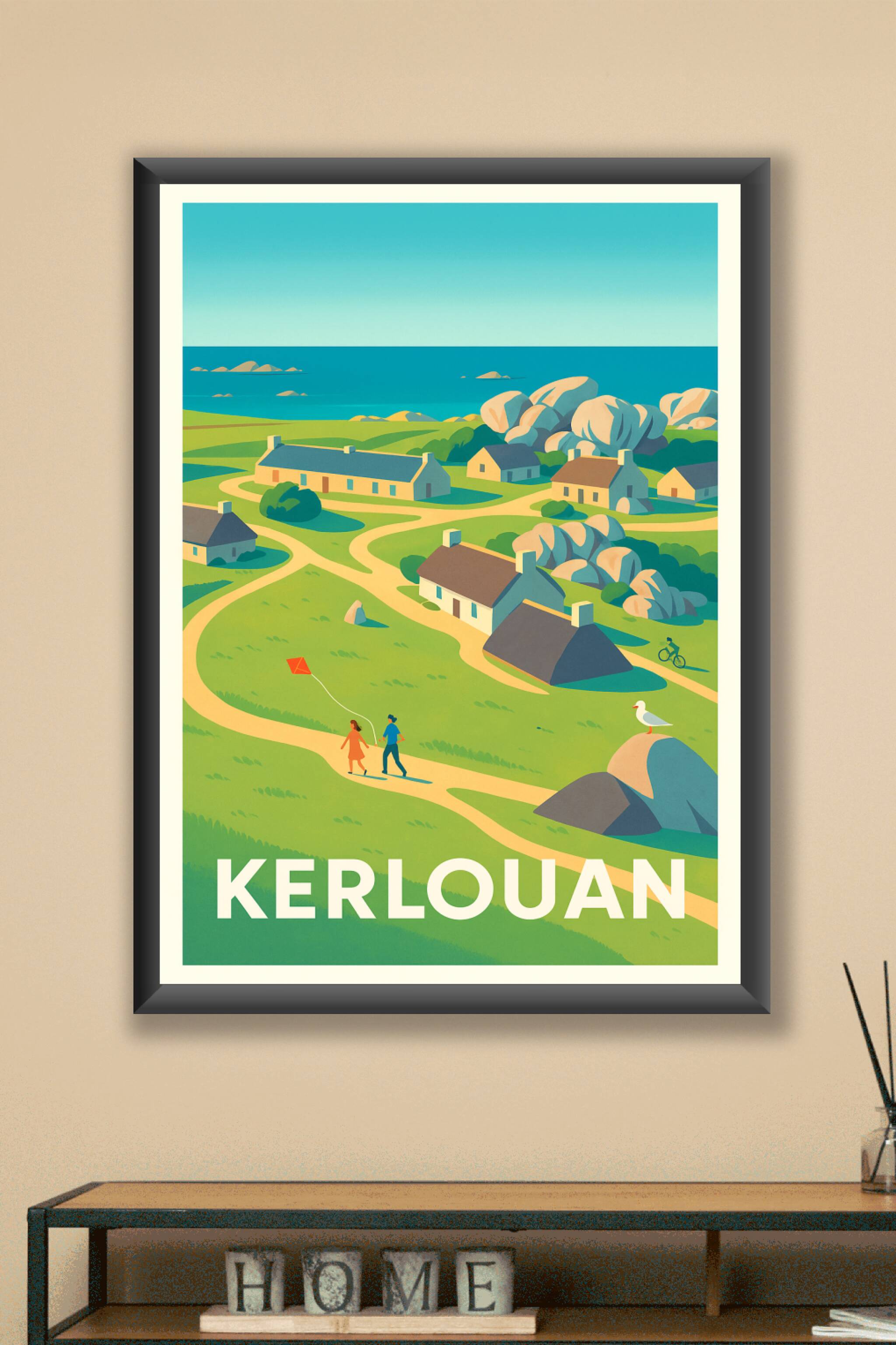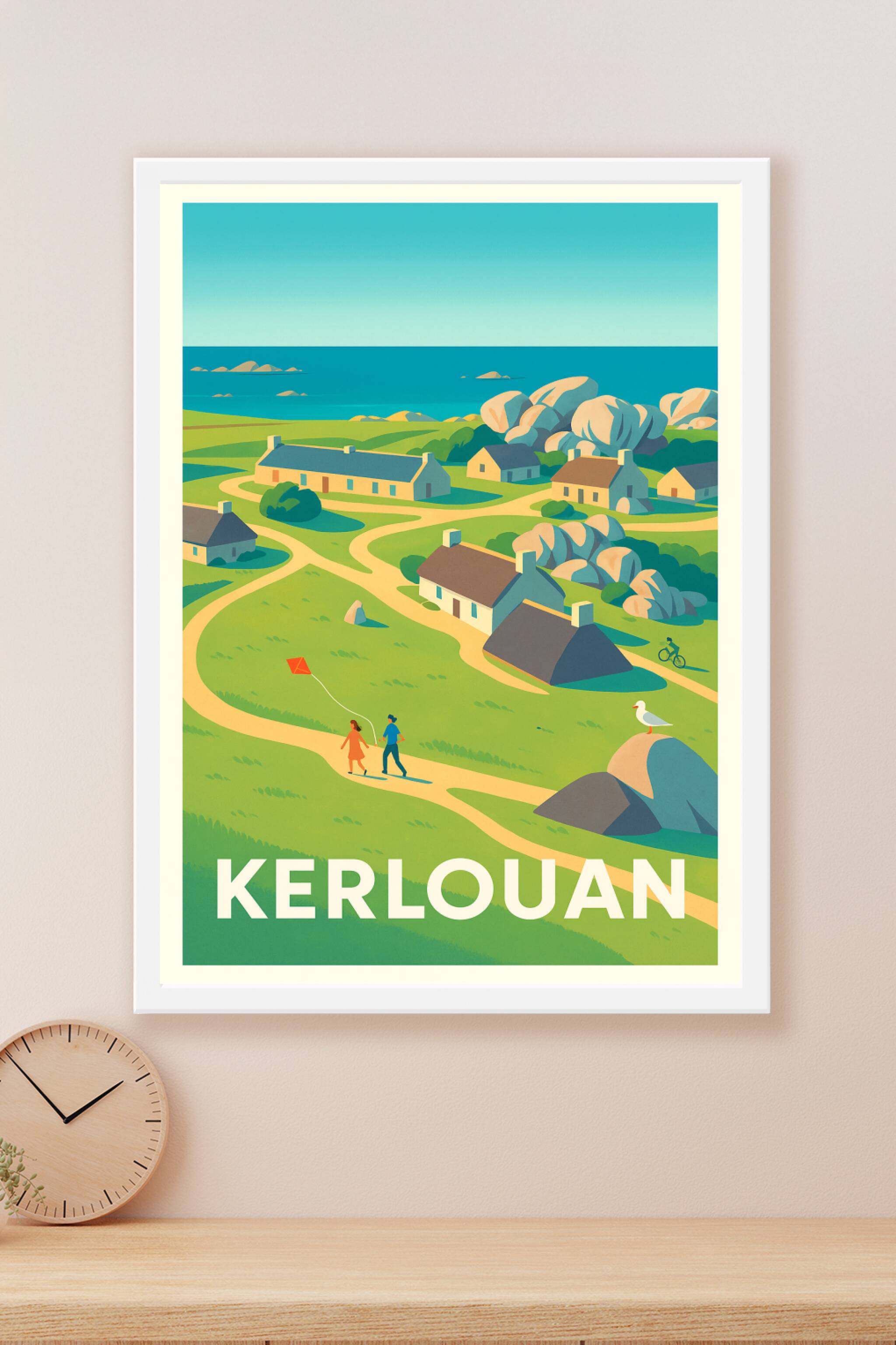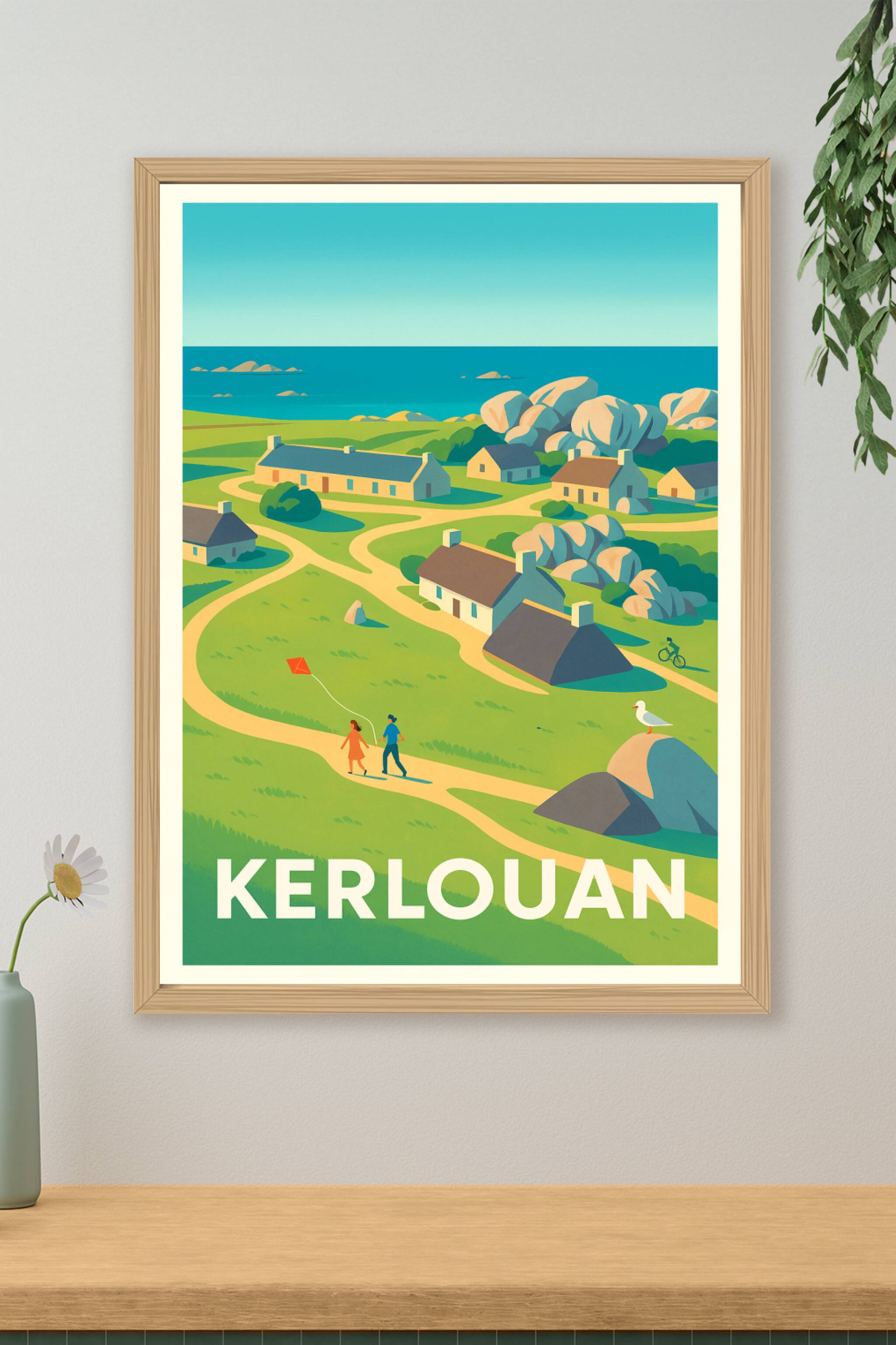 Laissez-vous séduire par le charme authentique de Kerlouan grâce à cette affiche illustrée au style graphique et poétique. Entre chemins sinueux, m...
