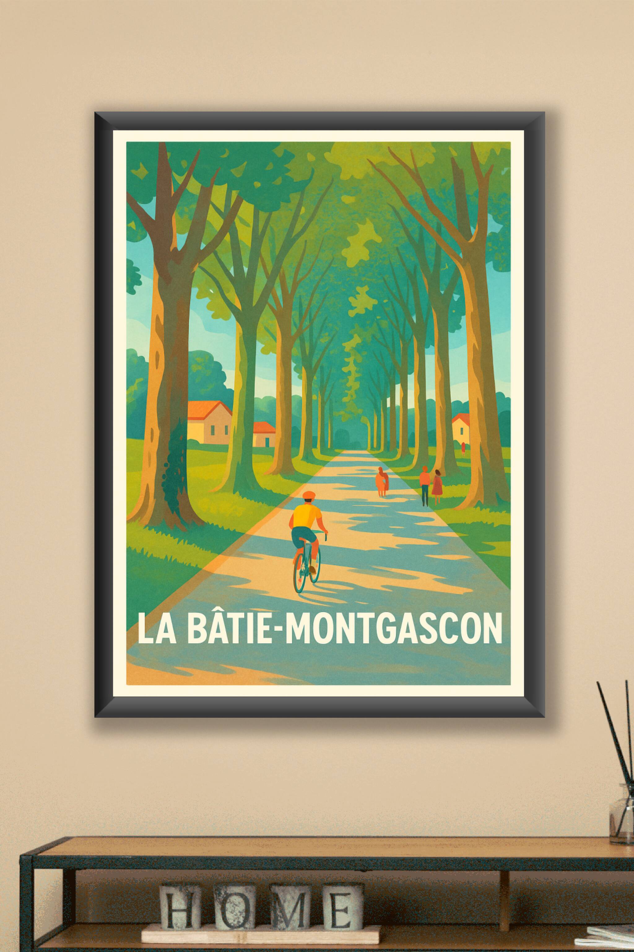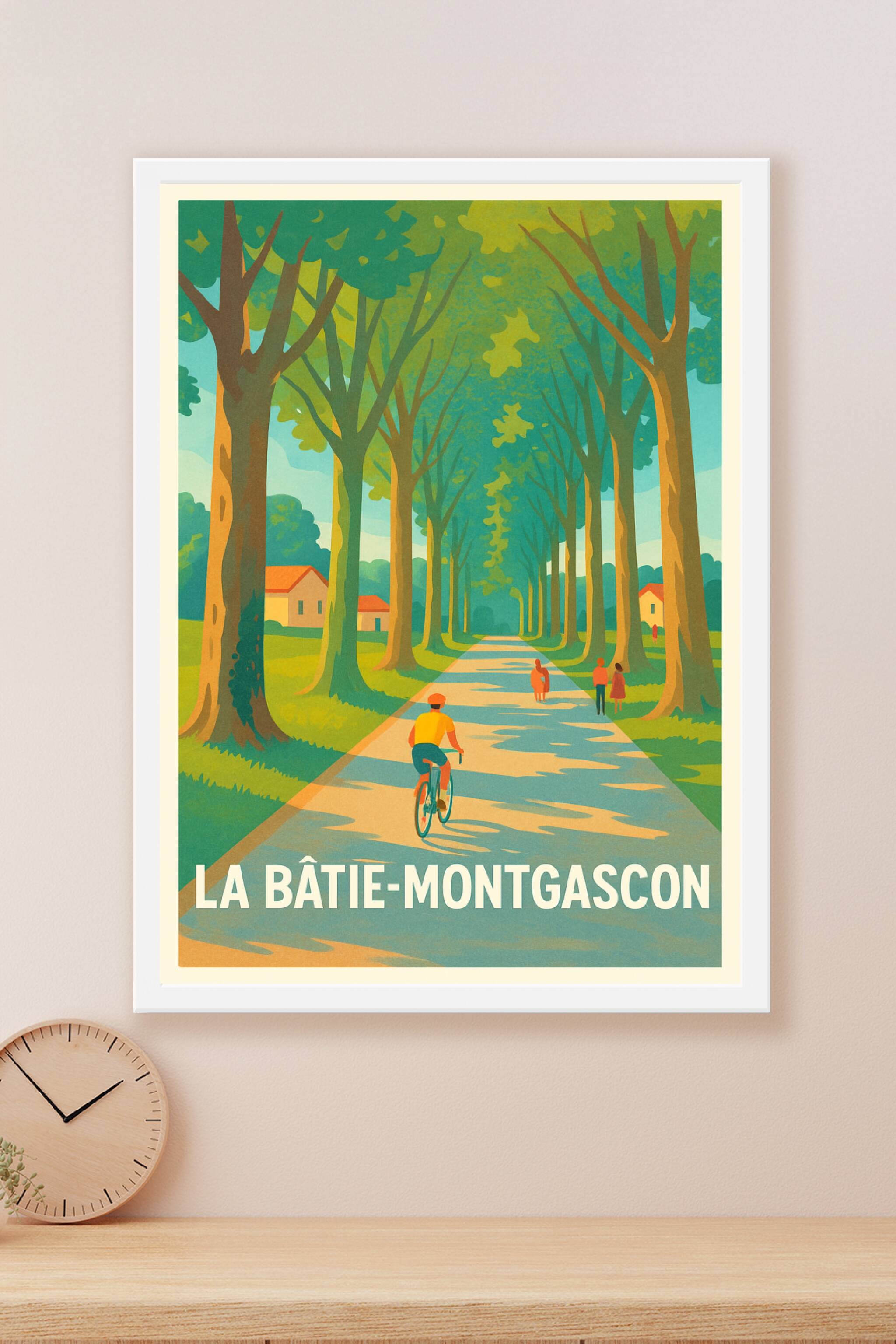 Offrez à votre intérieur une escapade bucolique avec cette affiche représentant une allée ombragée typique de La Bâtie-Montgascon. Le poster illustre la douceur de vivre dans cette charmante commune, où vélo et balades sous les grands arbres créent une ambiance tranquille et ressourçante.Ce poster est imprimé en tirage Fine Art sur papier 305g coton, garantissant une qualité d'impression haute définition aux couleurs éclatantes et une longévité remarquable. Proposé en formats A1 à A4, avec ou sans cadre, il s'adapte parfaitement à votre décoration. Sublimez vos murs avec cette affiche inspirante, idéale pour tous les amoureux de nature et de paysages authentiques.