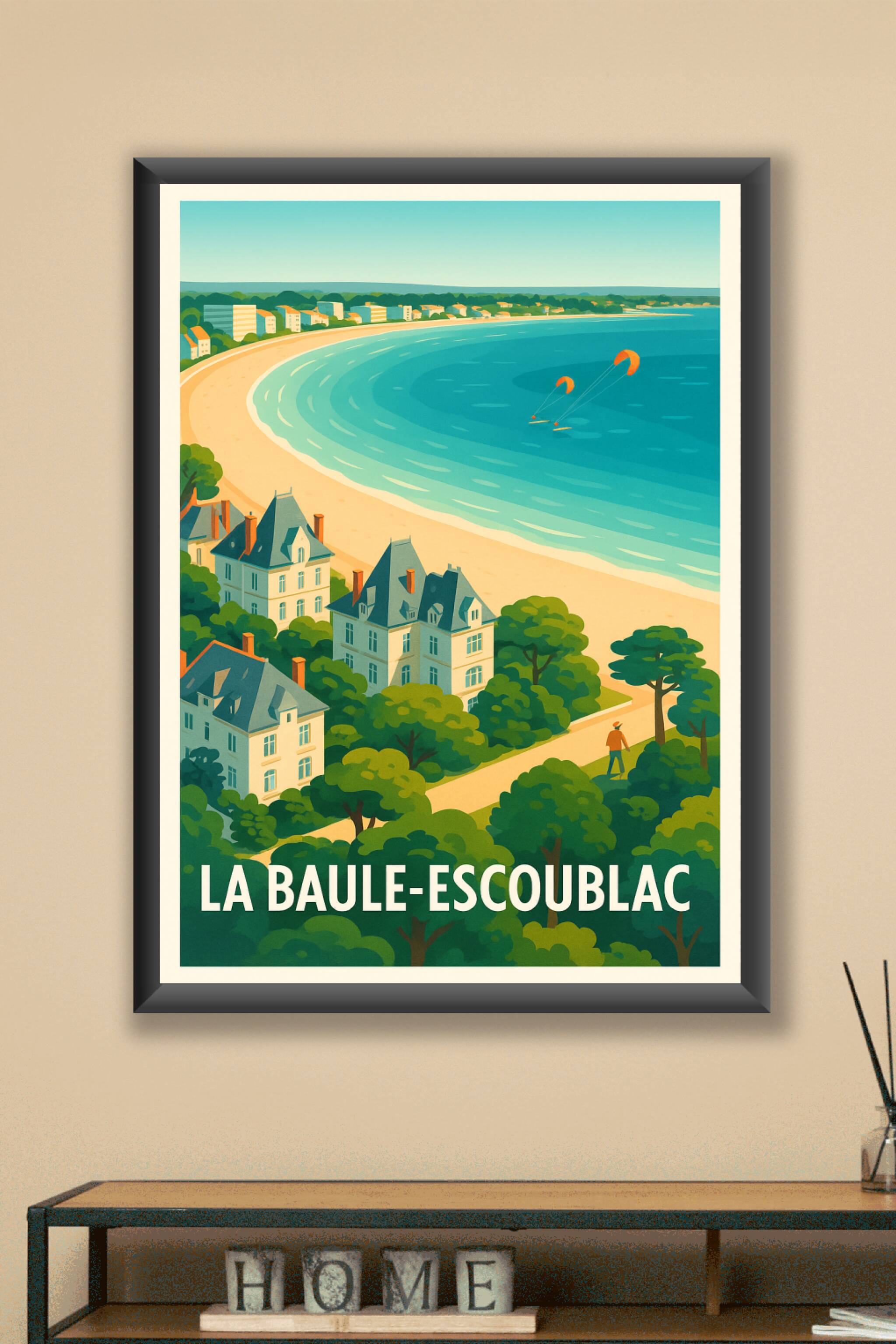 Découvrez l'atmosphère apaisante et charmante de La Baule-Escoublac à travers cette affiche vintage évoquant ses magnifiques villas et sa plage emb...
