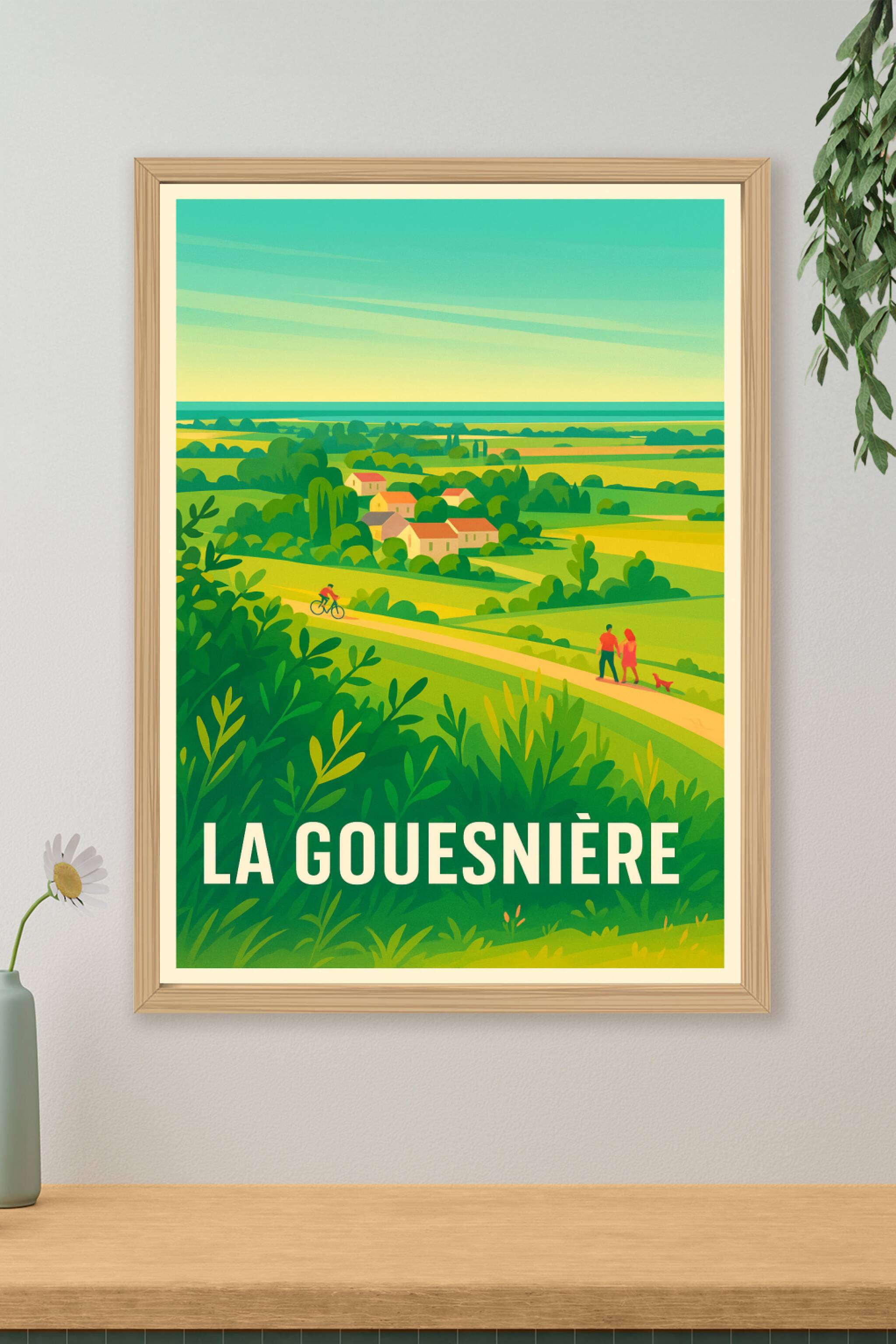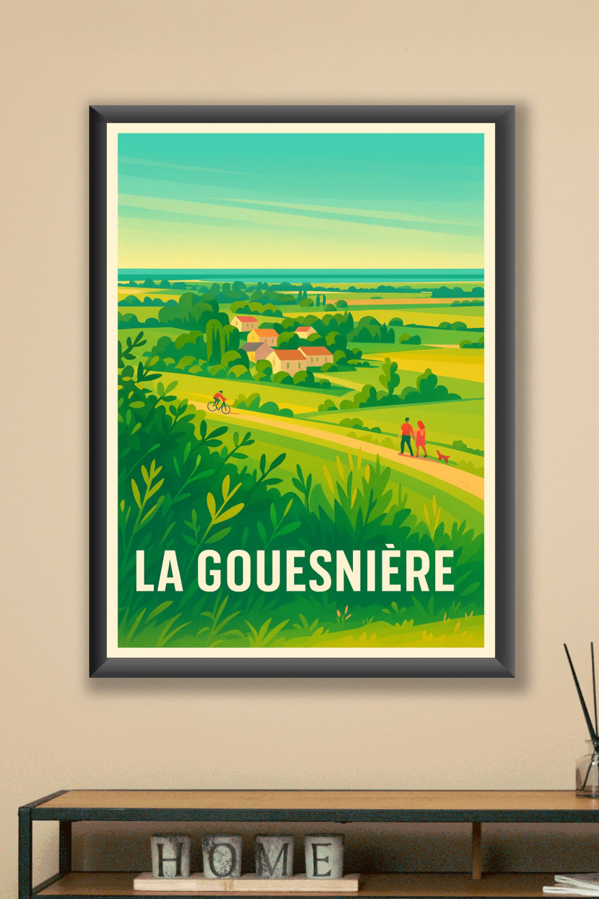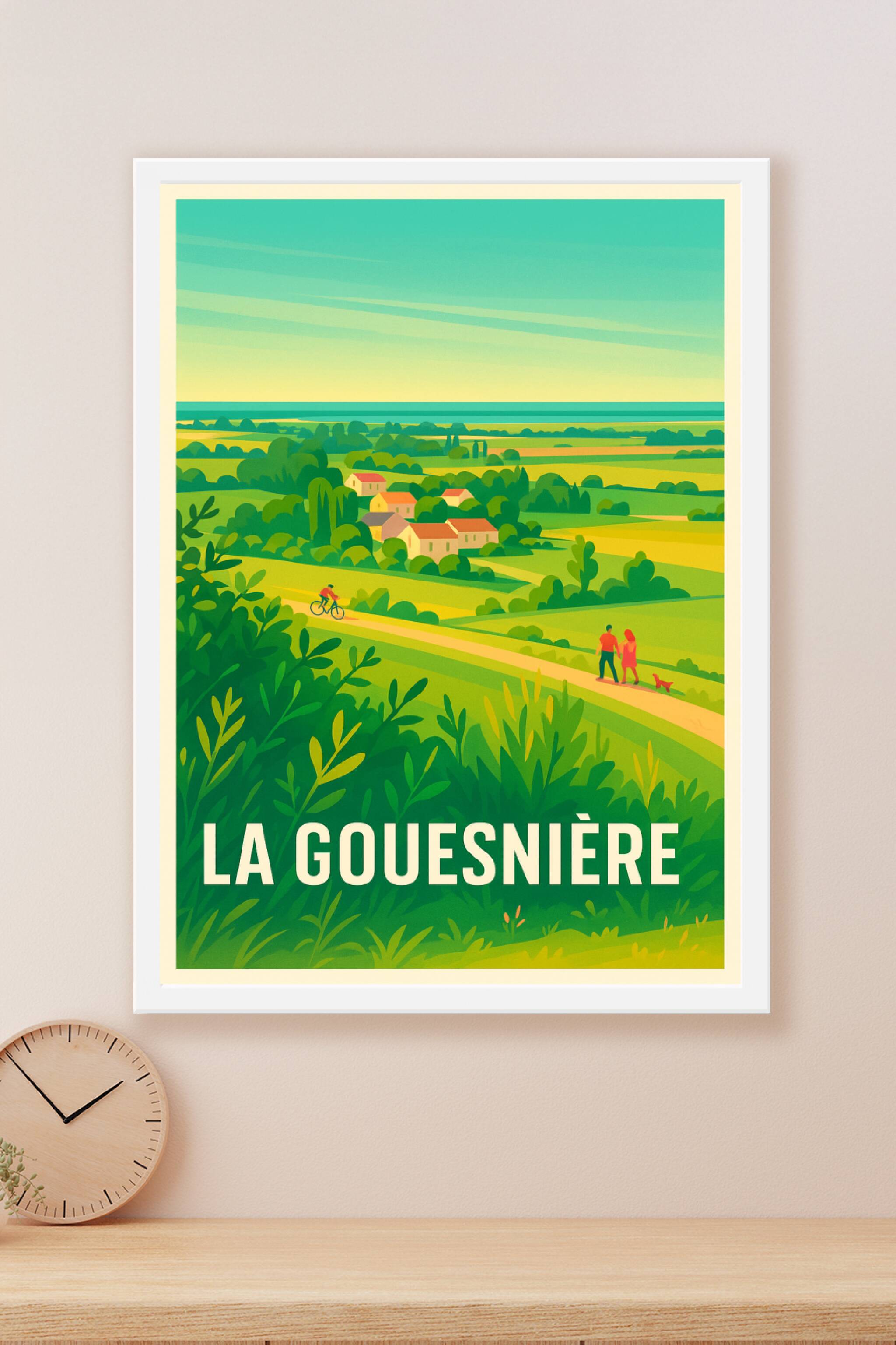 Découvrez la douceur de vivre en bord de campagne avec cette affiche illustrée inspirée des paysages verts et vallonnés de La Gouesnière. Ce poster...