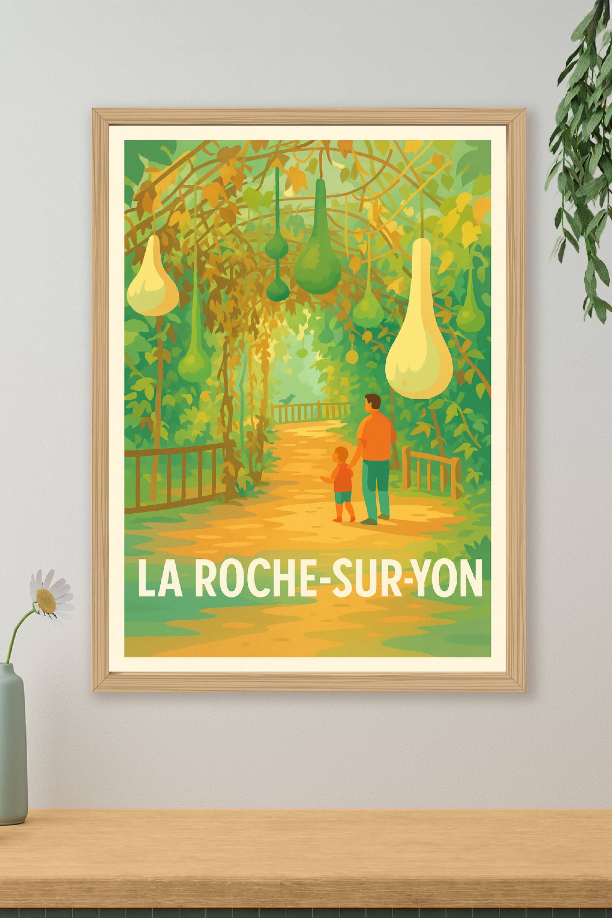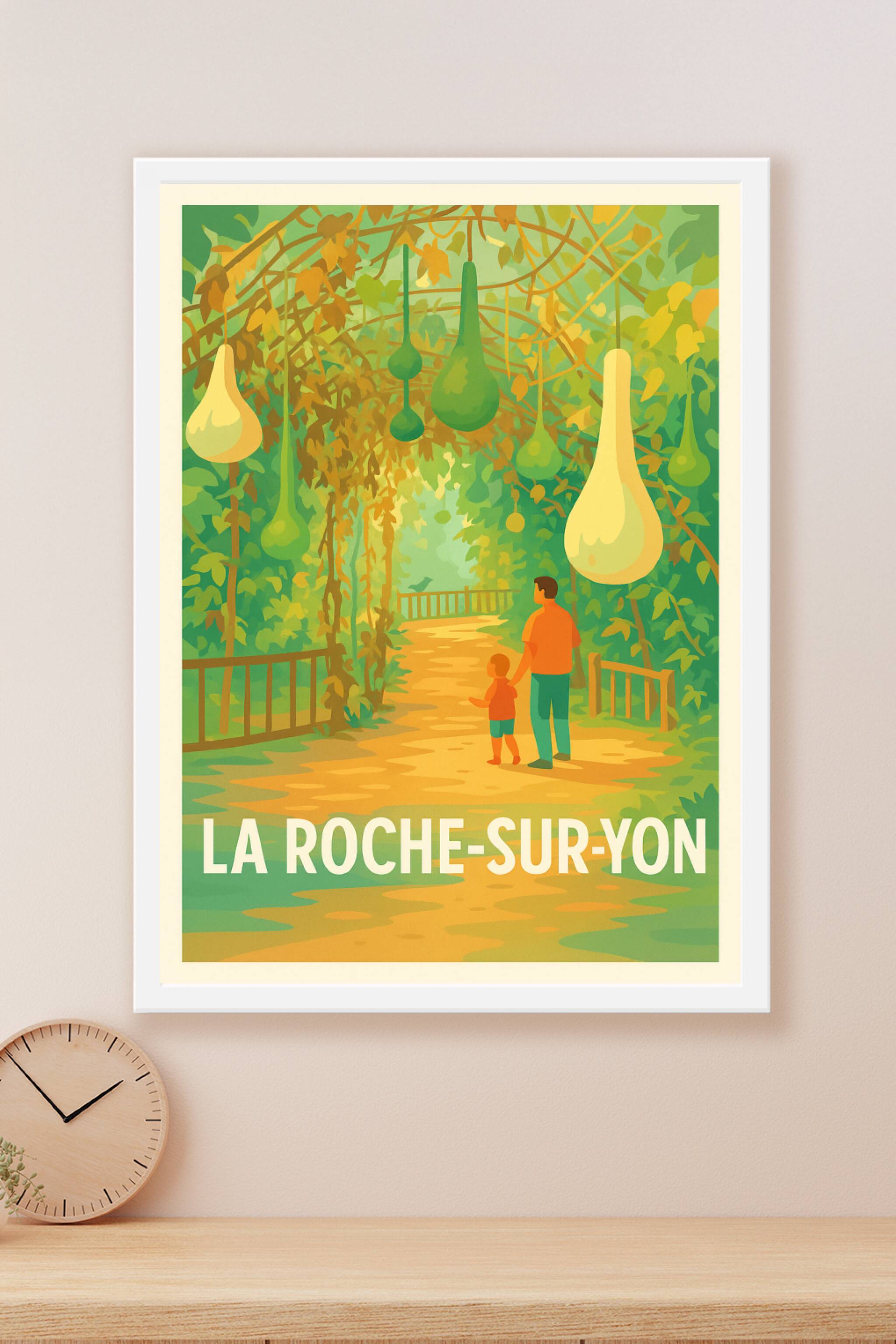 Découvrez la douceur et la sérénité de La Roche-sur-Yon avec cette affiche illustrée qui capture une promenade empreinte de calme, bercée par une v...