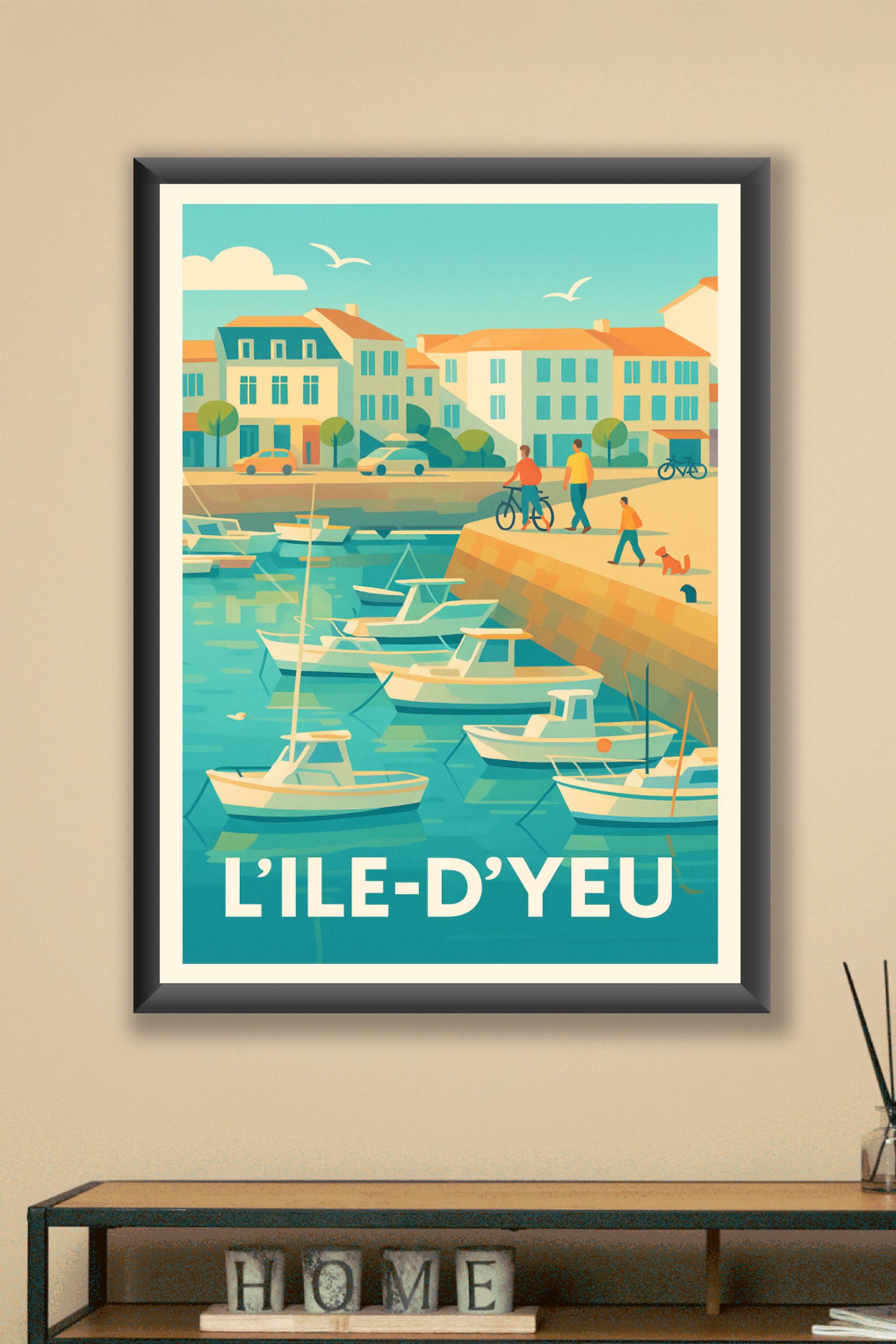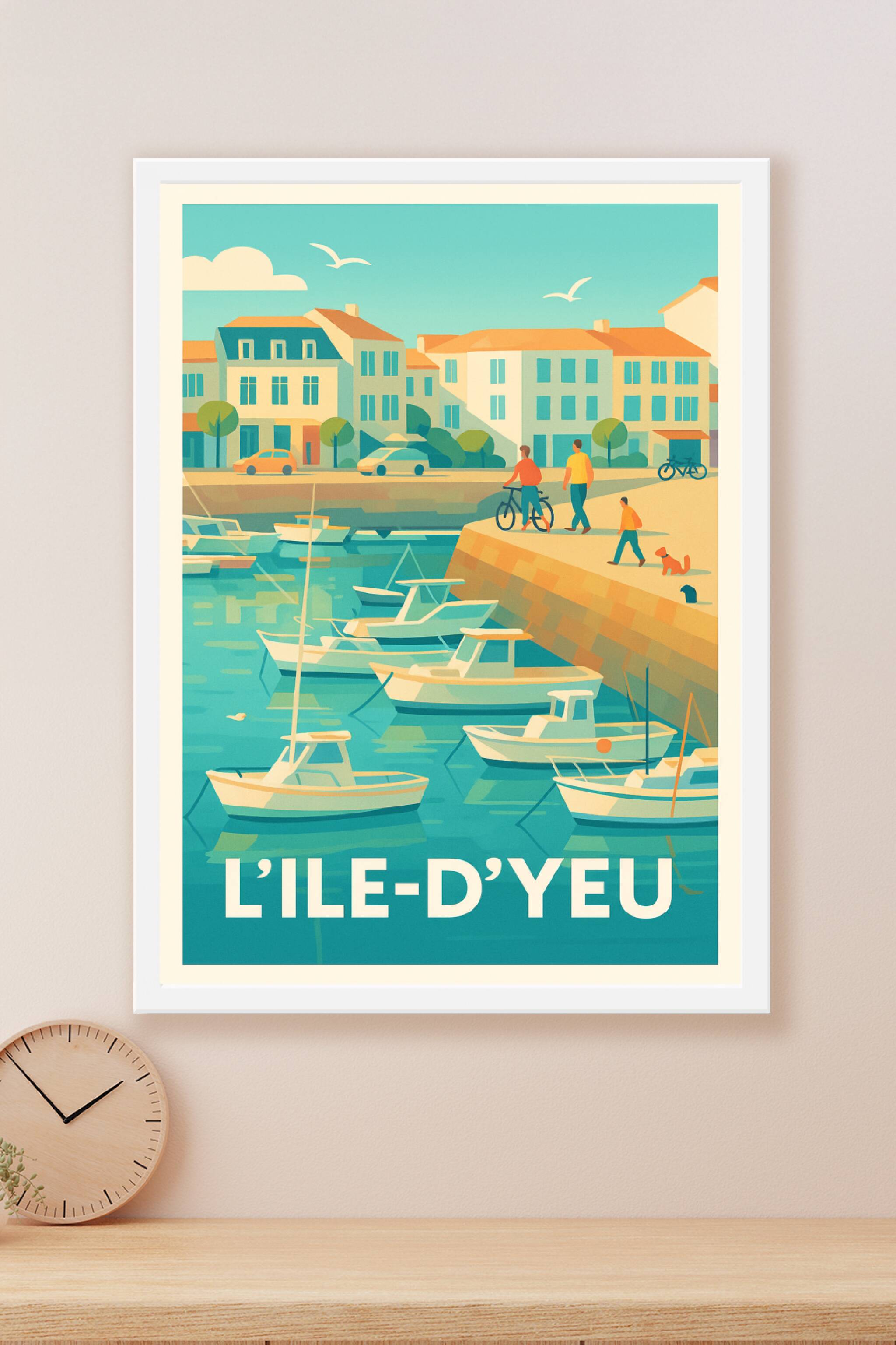 Laissez-vous séduire par l'atmosphère paisible et colorée de L'île d'Yeu avec ce poster illustré au charme vintage. Cette affiche capture le calme ...