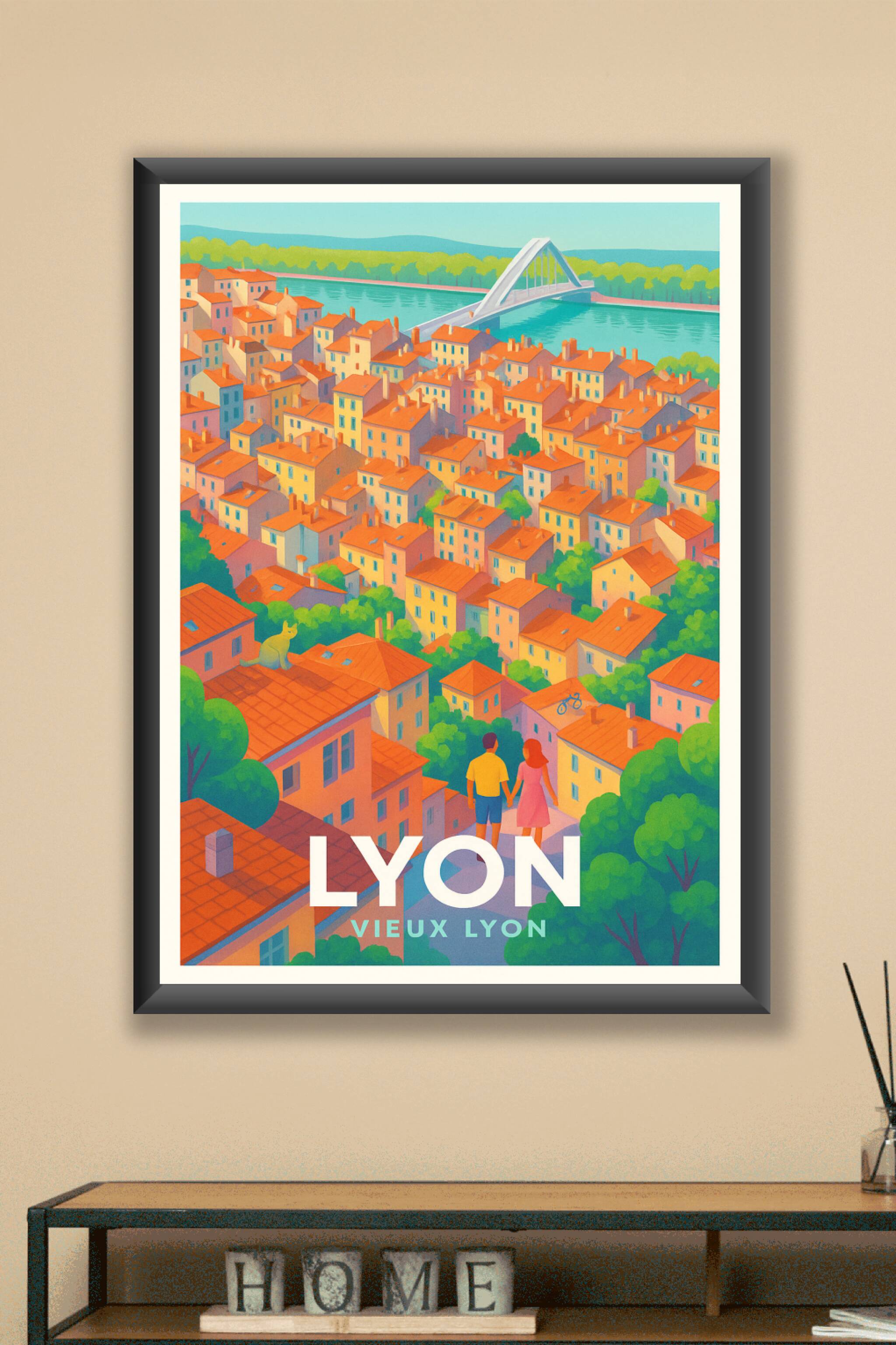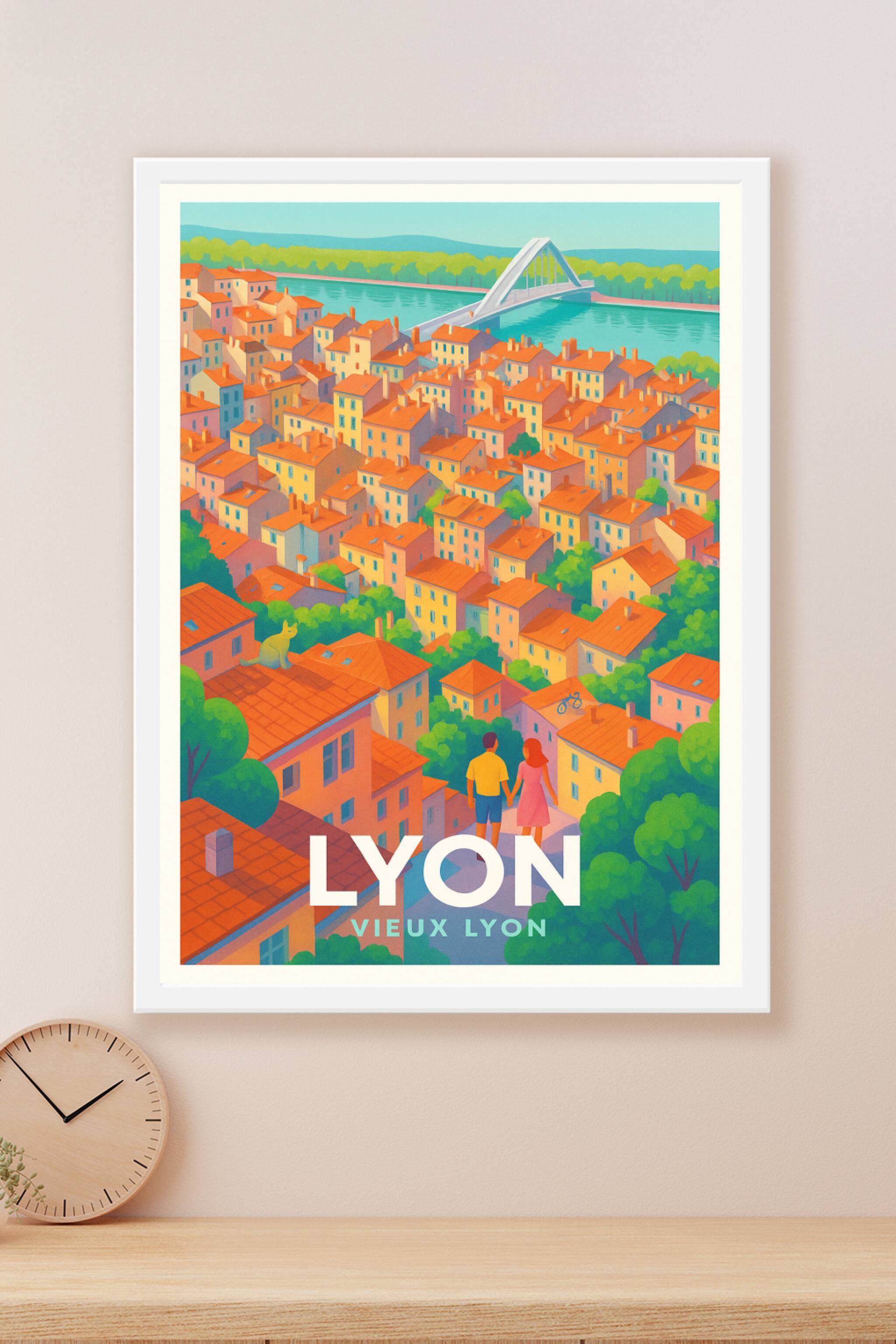 Découvrez le charme intemporel de la capitale des Gaules avec cette affiche illustrée du Vieux-Lyon, entre ruelles escarpées et toits ocres baignés de lumière. Ce poster capture l’essence pittoresque de ce quartier historique classé au patrimoine mondial de l’UNESCO, avec une ambiance chaleureuse et colorée. Parfaite pour décorer votre intérieur ou offrir un souvenir empreint d’émotion, cette affiche est disponible en tirage « Fine Art » sur papier 305g 100% coton pour une finition haut de gamme. Formats disponibles du A1 au A4, avec ou sans cadre, pour s’adapter à tous les espaces. Un poster made in France qui célèbre avec élégance l’âme de Lyon.