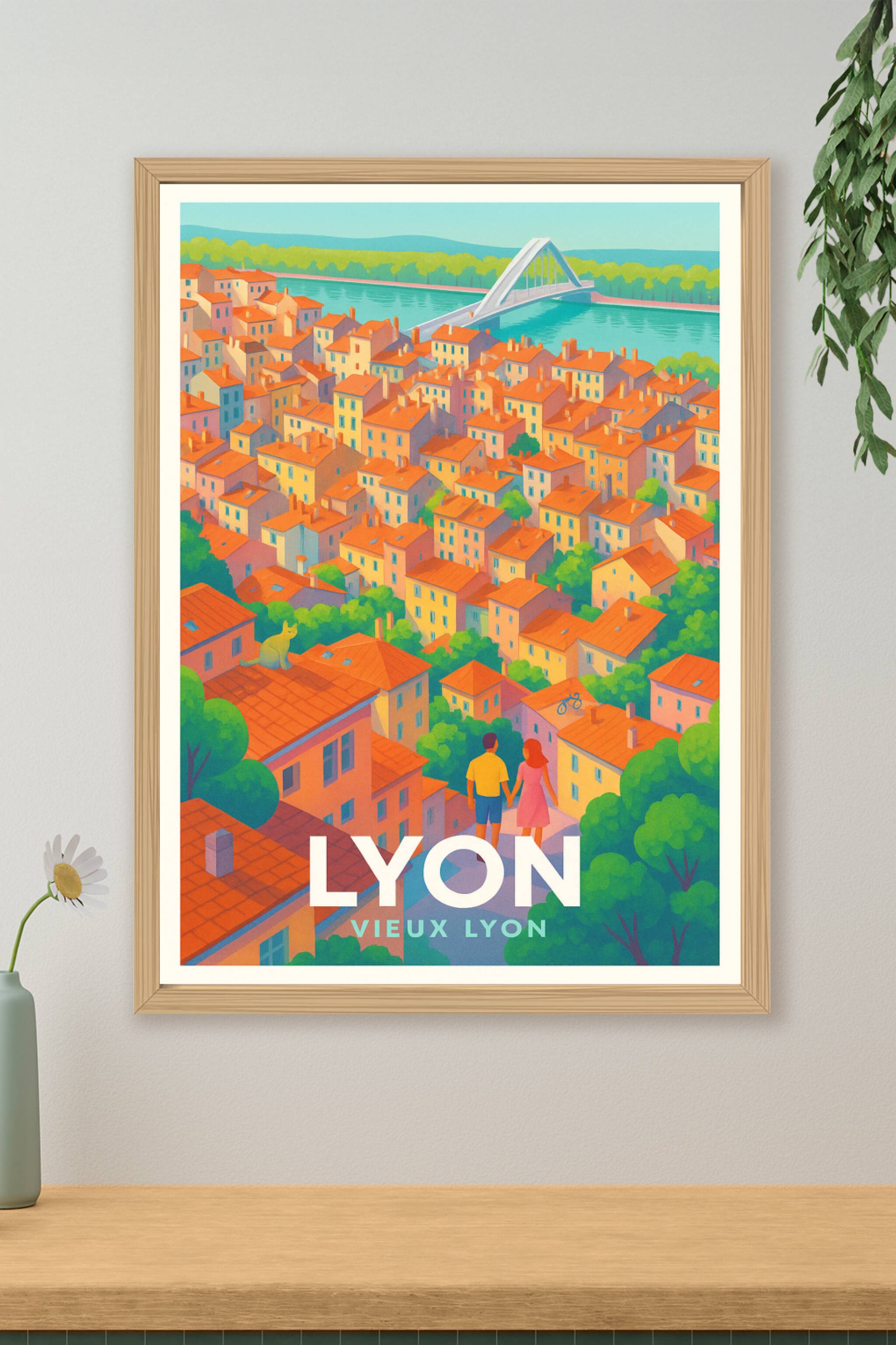 Découvrez le charme intemporel de la capitale des Gaules avec cette affiche illustrée du Vieux-Lyon, entre ruelles escarpées et toits ocres baignés...