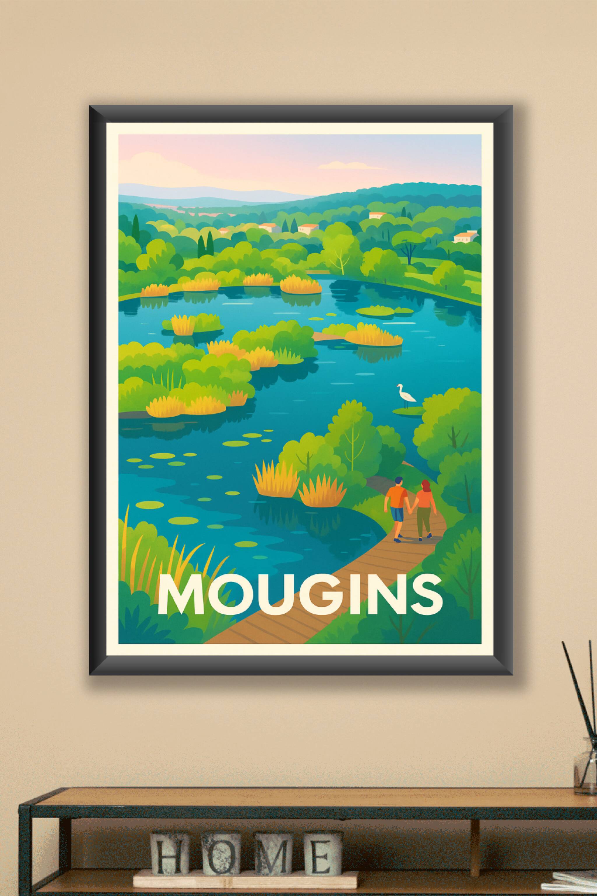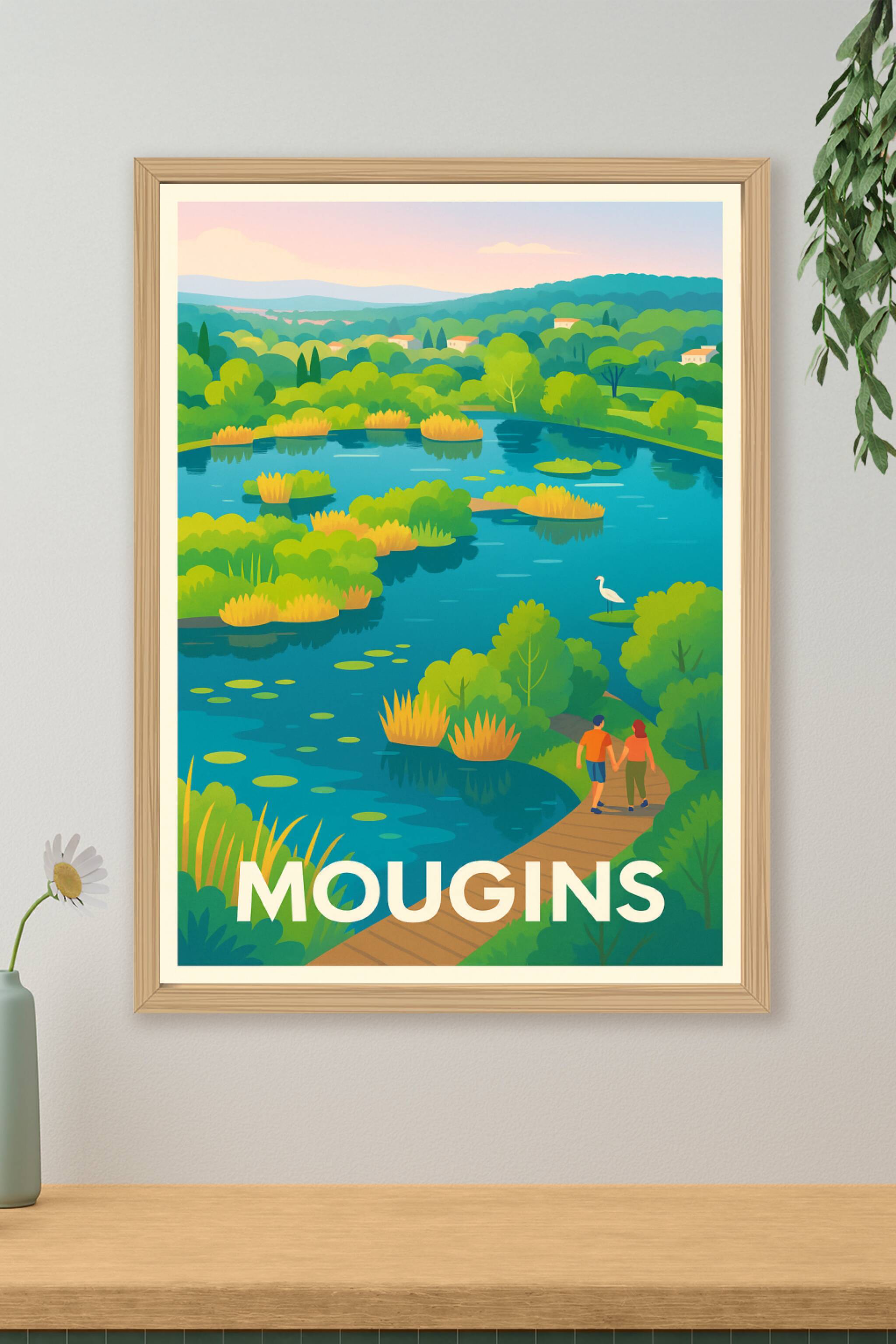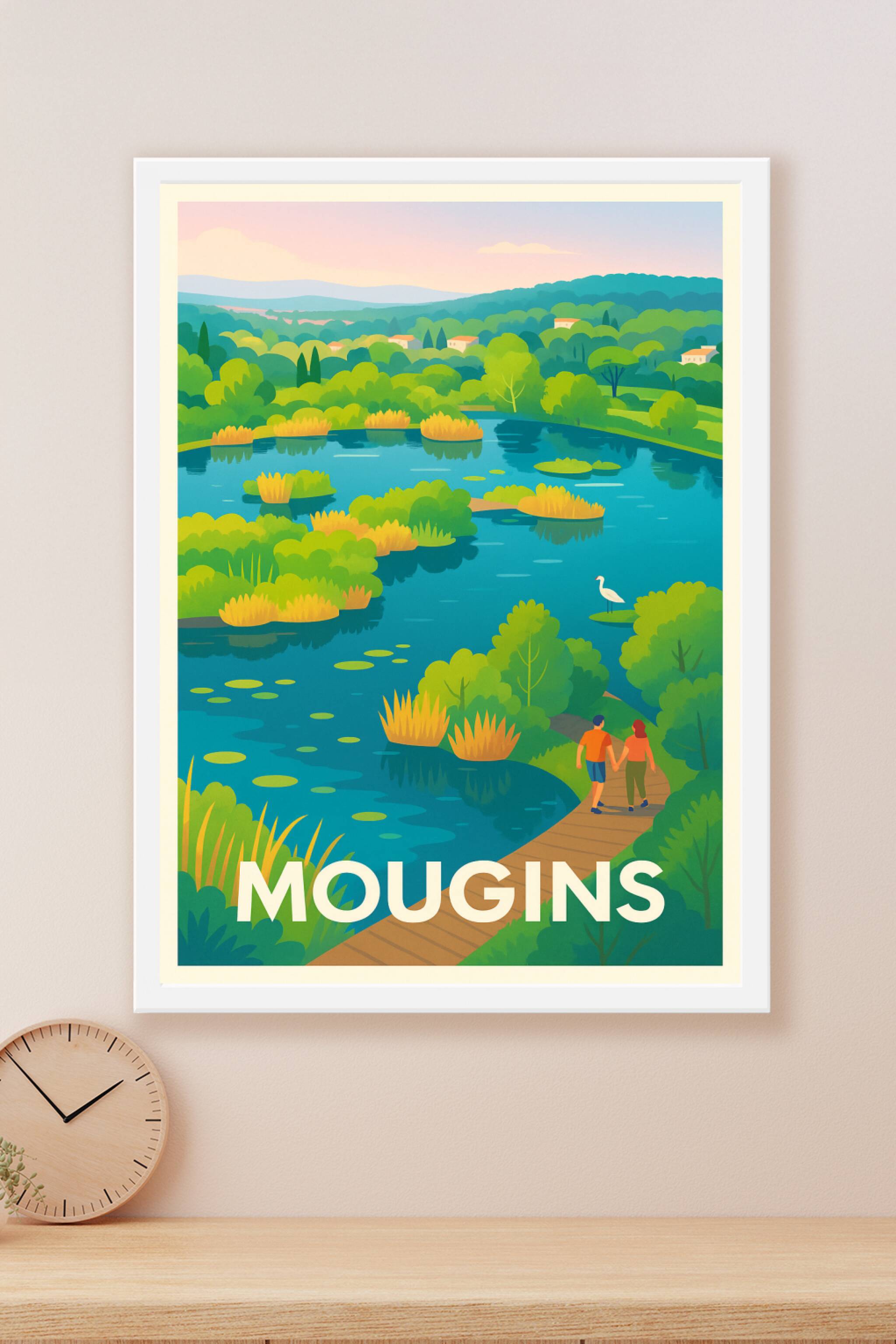Découvrez la sérénité et la beauté naturelle de Mougins avec cette affiche colorée et apaisante qui capture un paysage verdoyant et un sentier paisible au bord de l'eau. Ce poster illustré invite à la détente et à l'exploration, parfait pour insuffler une ambiance de calme et de nature dans votre intérieur. Imprimée en tirage Fine Art sur papier 305g coton, cette affiche allie qualité d'impression exceptionnelle et rendu des couleurs vibrantes. Disponible en formats A1 à A4, avec ou sans cadre, elle s'adapte à toutes vos envies de décoration. Un poster d'exception, 100% fabriqué en France, idéal pour offrir ou embellir votre espace de vie.