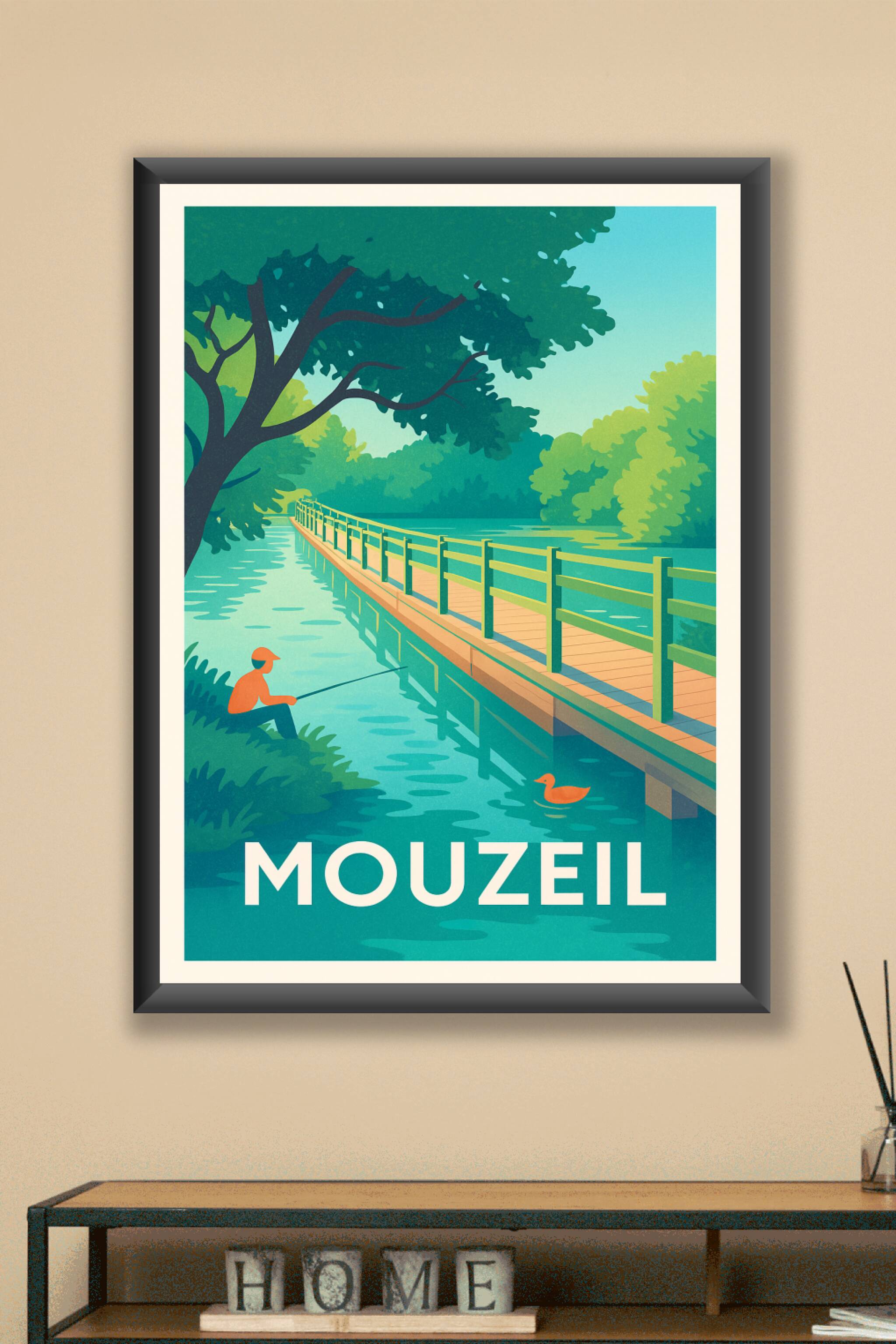 Apportez une touche de calme et de nature à votre intérieur avec cette affiche illustrée représentant un paisible pont sur l'eau à Mouzeil. L'atmos...
