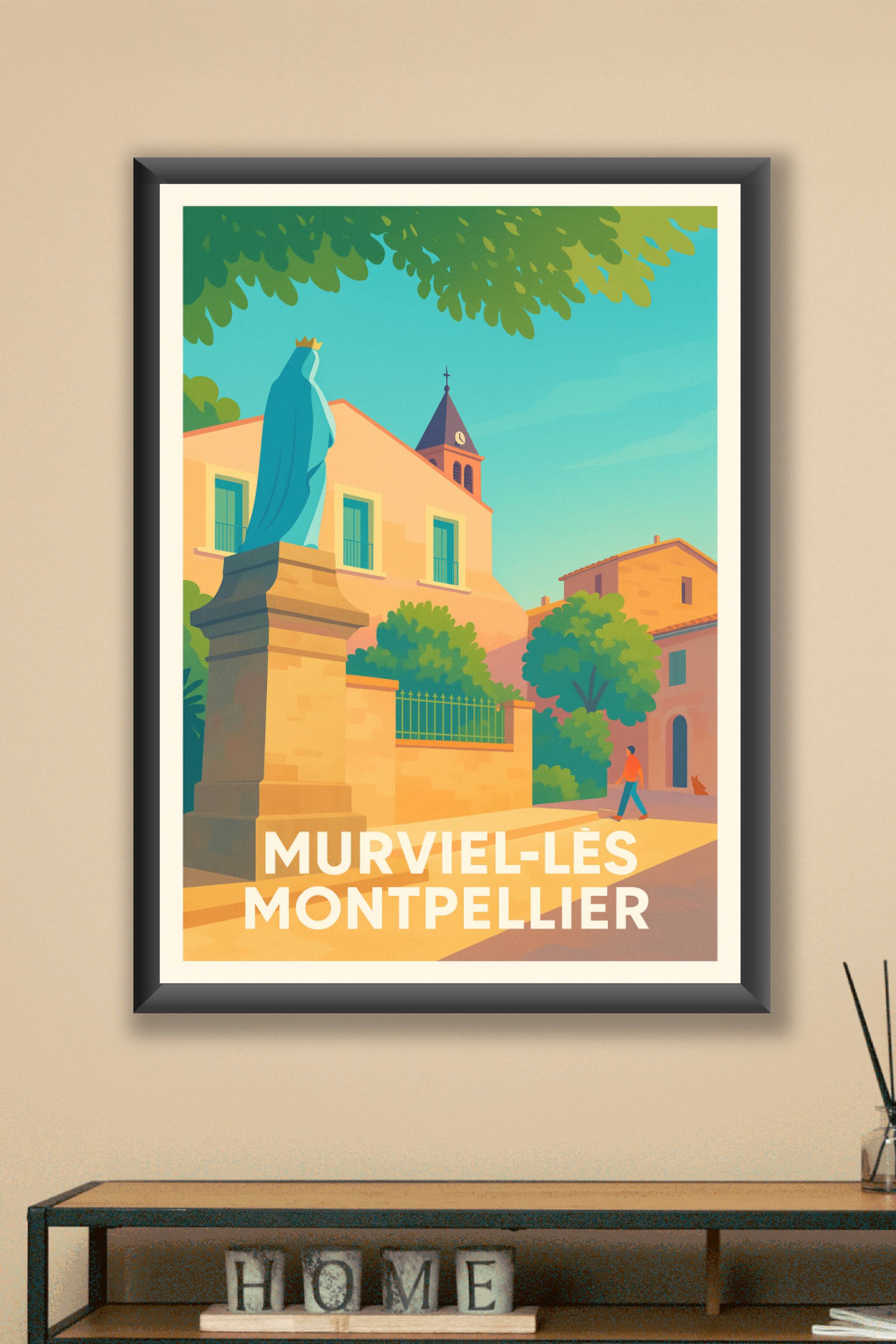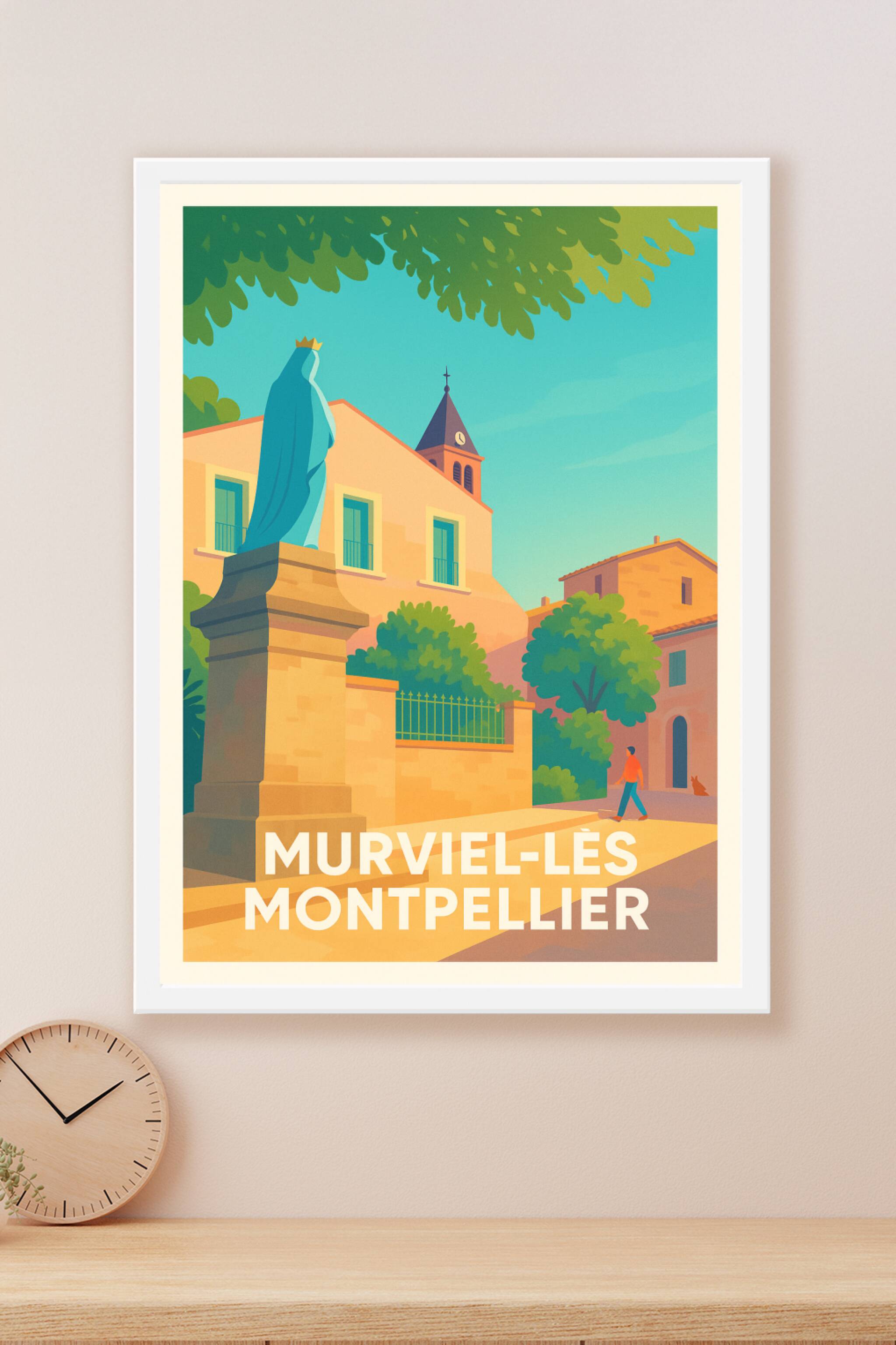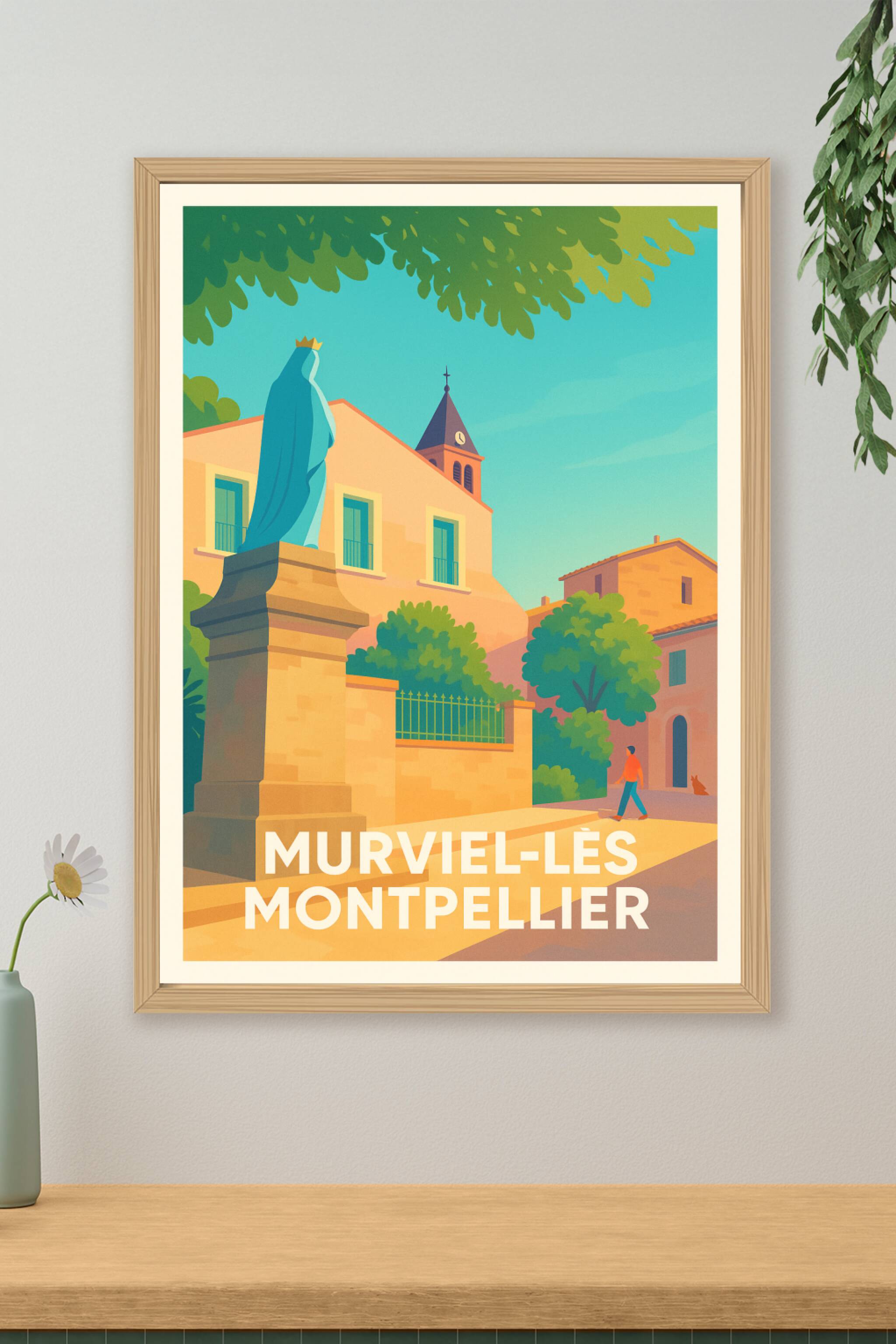 Découvrez l'atmosphère paisible et authentique de Murviel-lès-Montpellier à travers cette affiche illustrée aux couleurs douces et ensoleillées. Le...