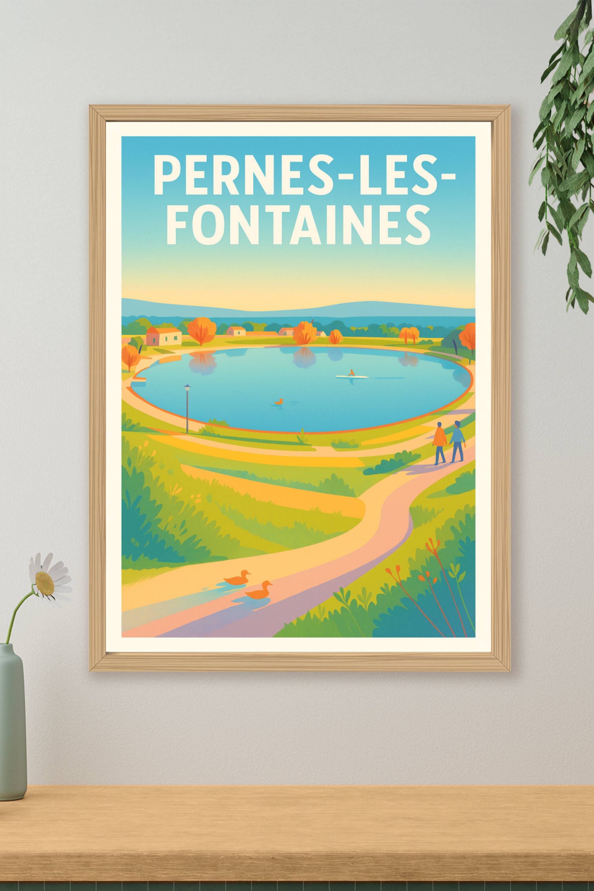 Découvrez la douceur de vivre de Pernes-les-Fontaines avec ce poster illustré aux couleurs chaleureuses et apaisantes. Cette affiche met en scène u...
