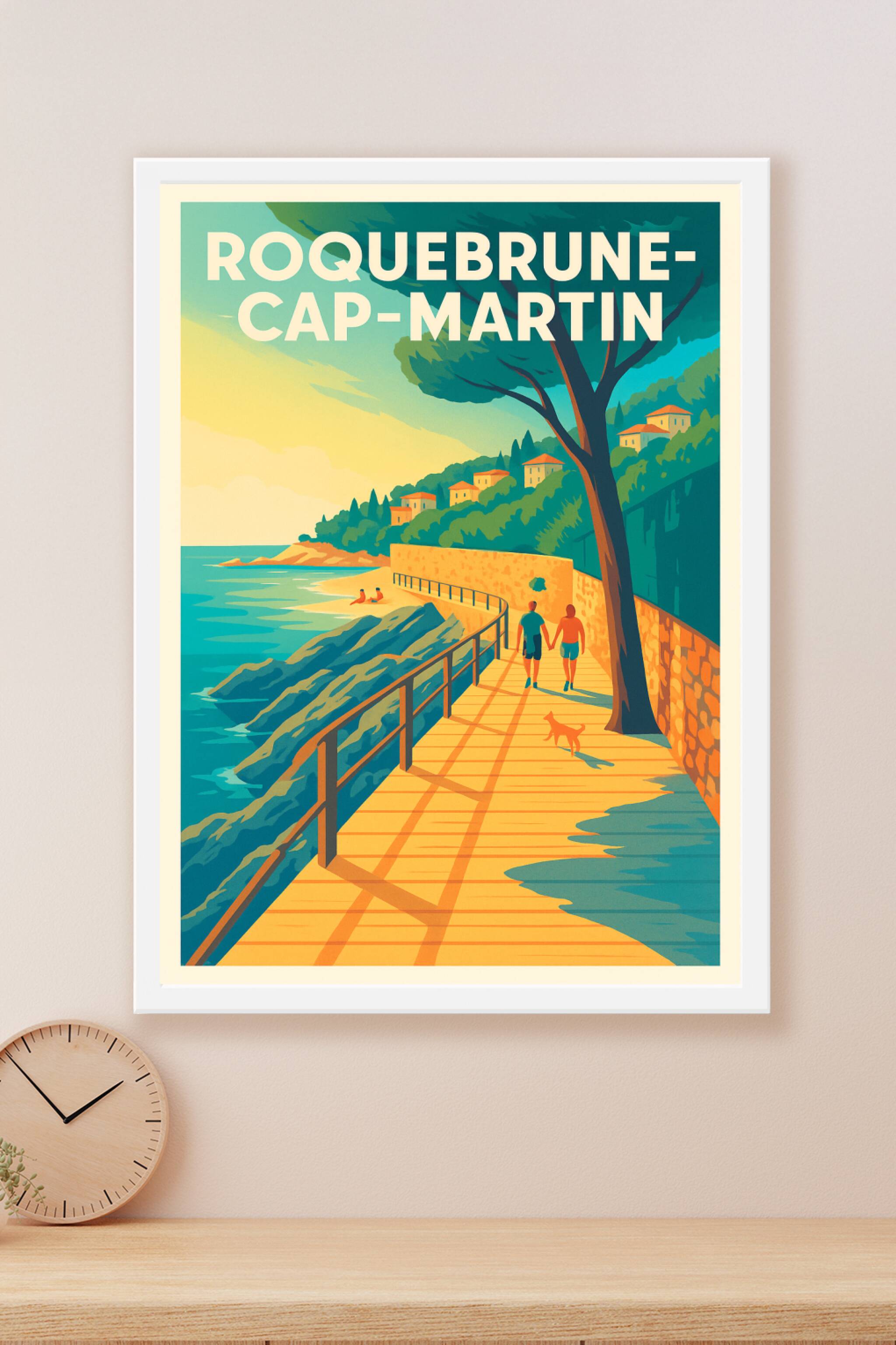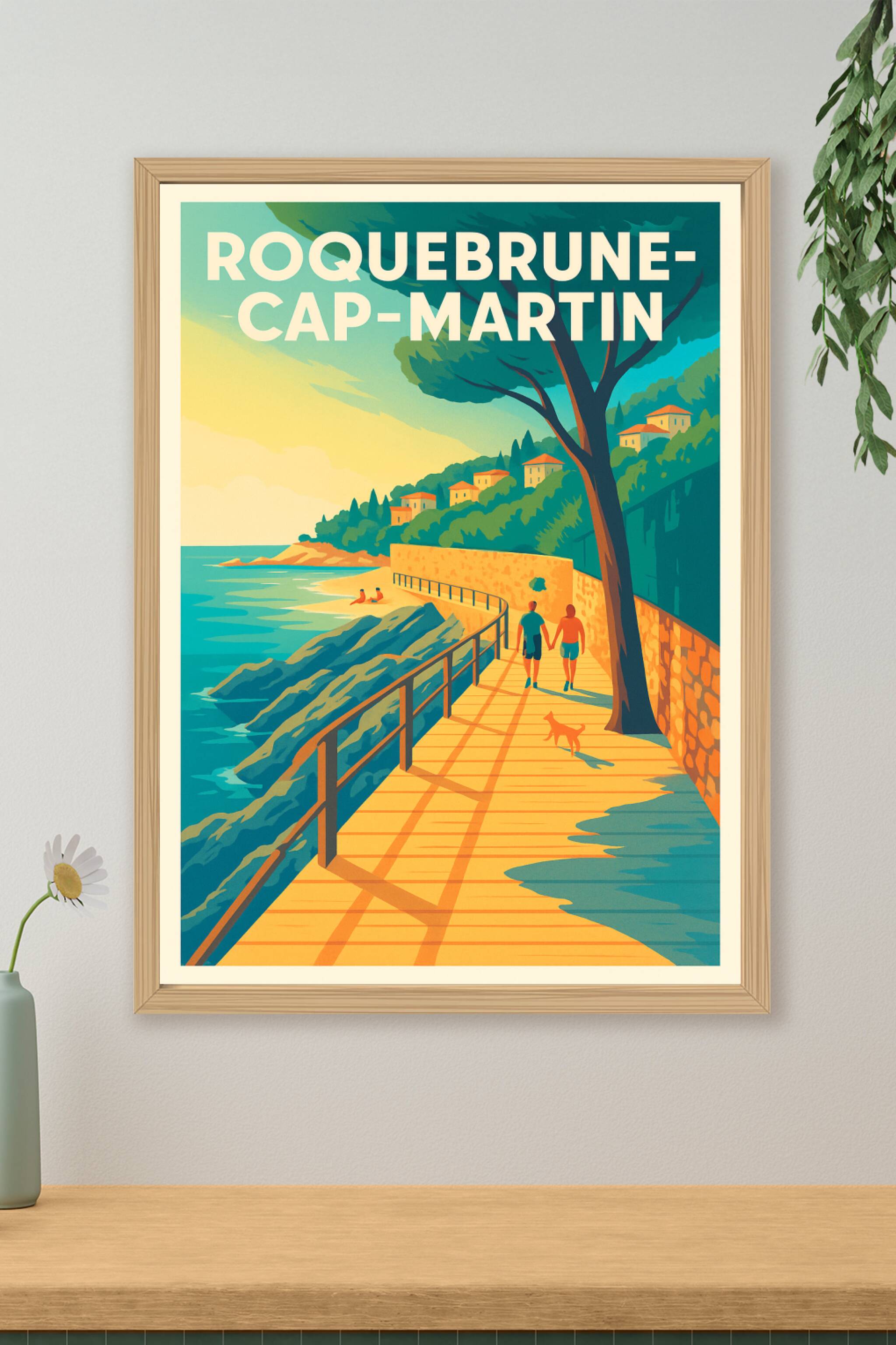 Apportez une touche authentique et lumineuse à votre intérieur avec cette affiche illustrant une promenade en bord de mer à Roquebrune-Cap-Martin. ...