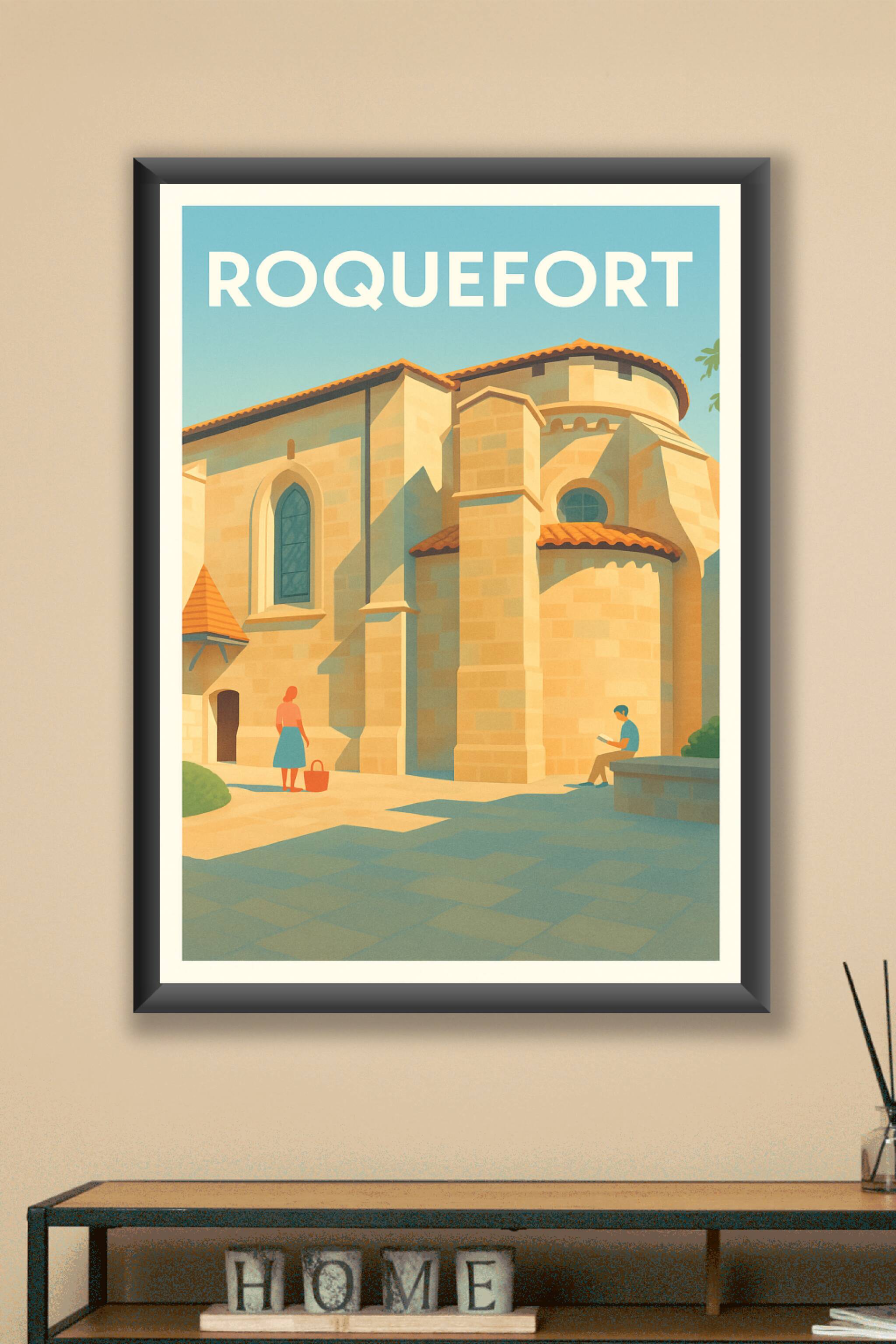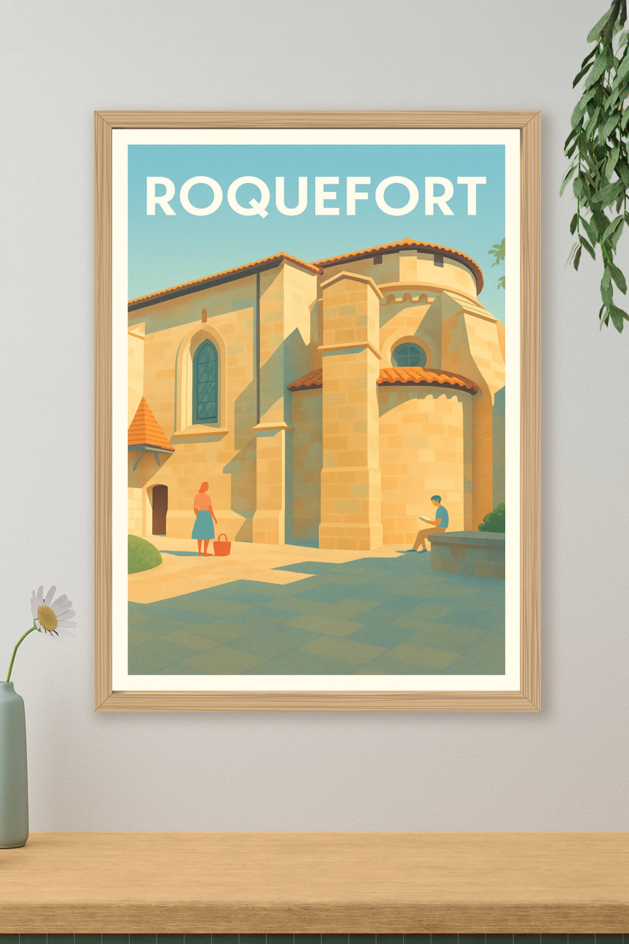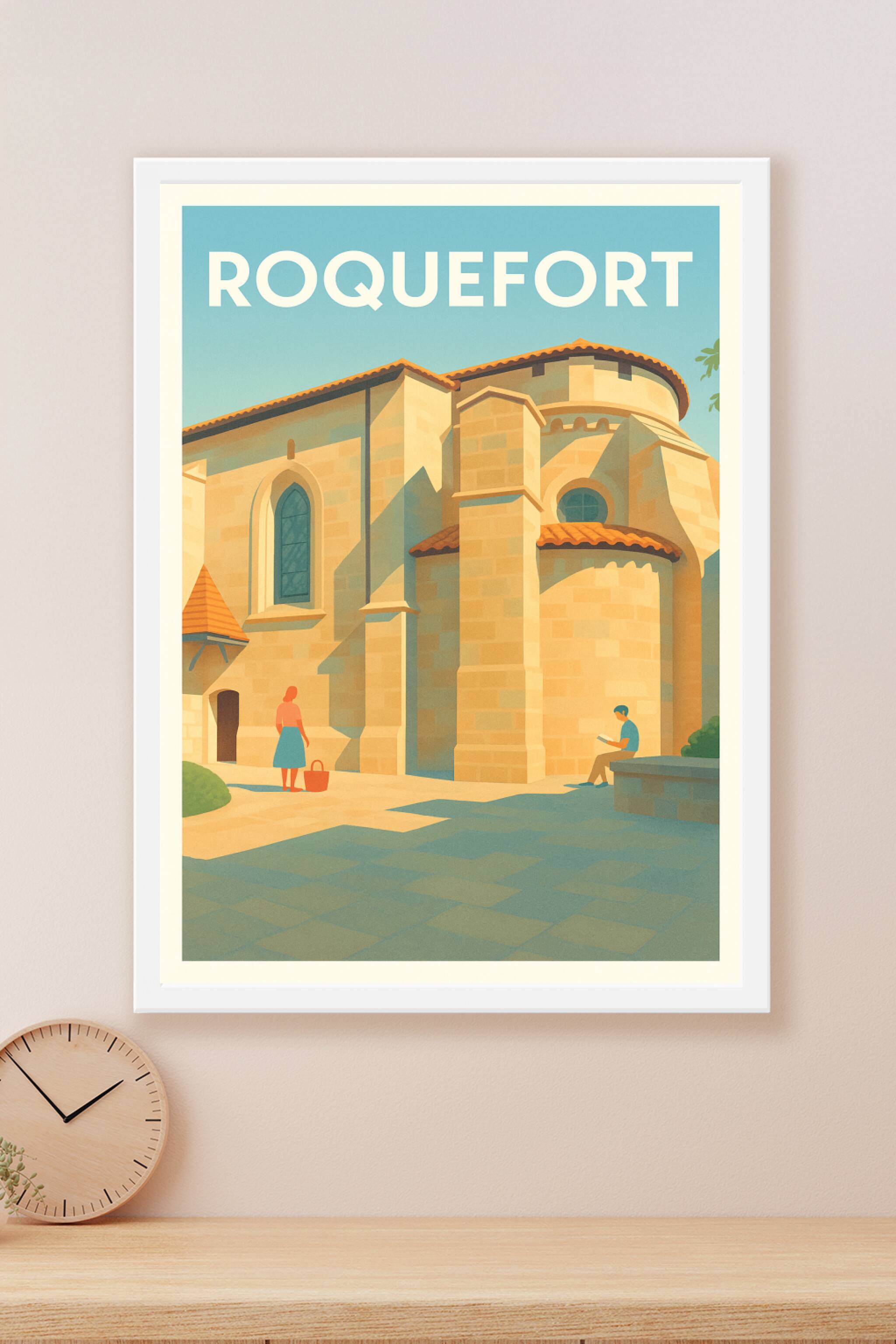 Découvrez l'élégance intemporelle de Roquefort avec cette affiche illustrée mettant en valeur l'architecture historique et le calme apaisant d'une ...