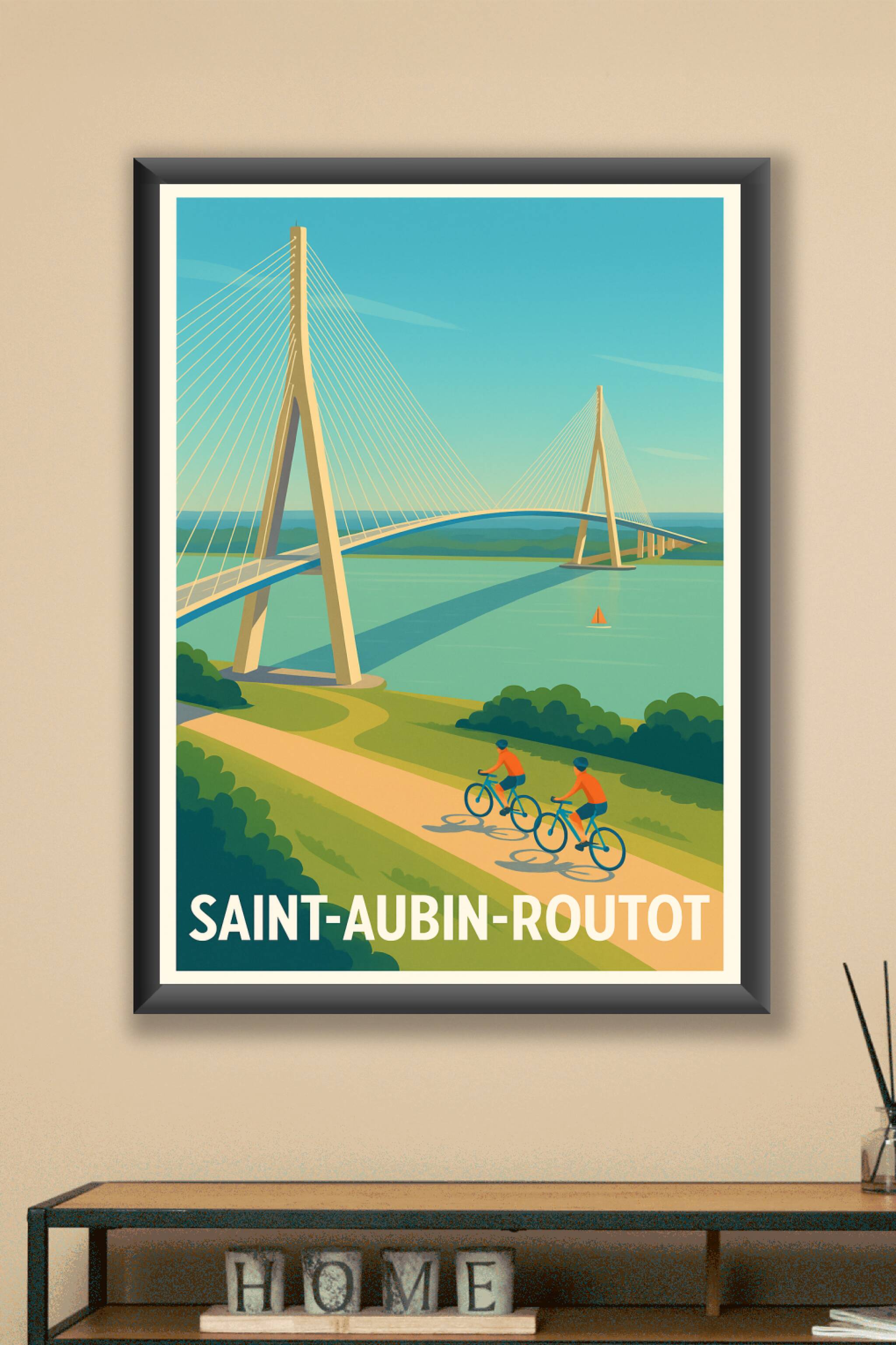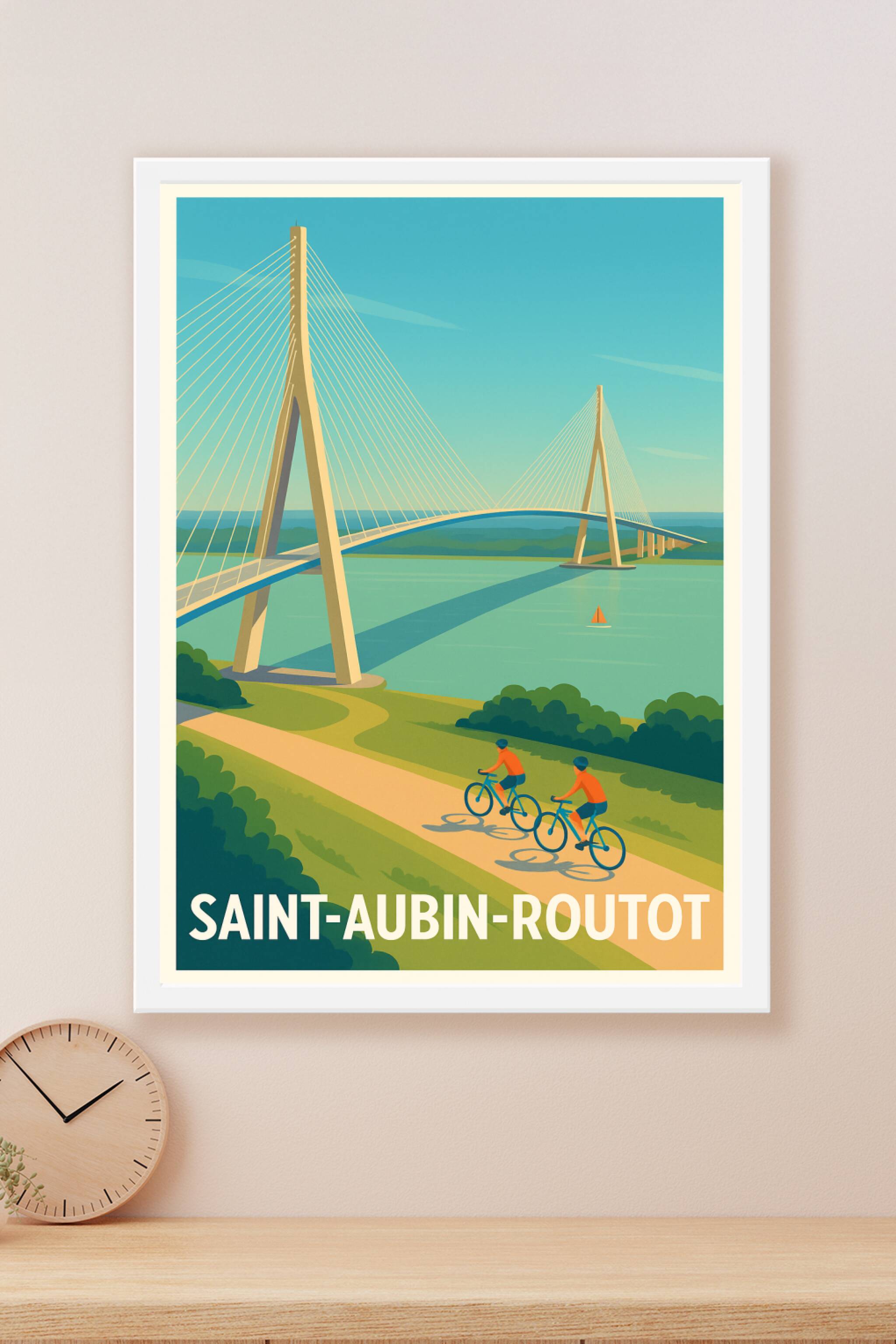 Affiche Saint-Aubin-Routot - L'élégance du pont et l'évasion à vélo