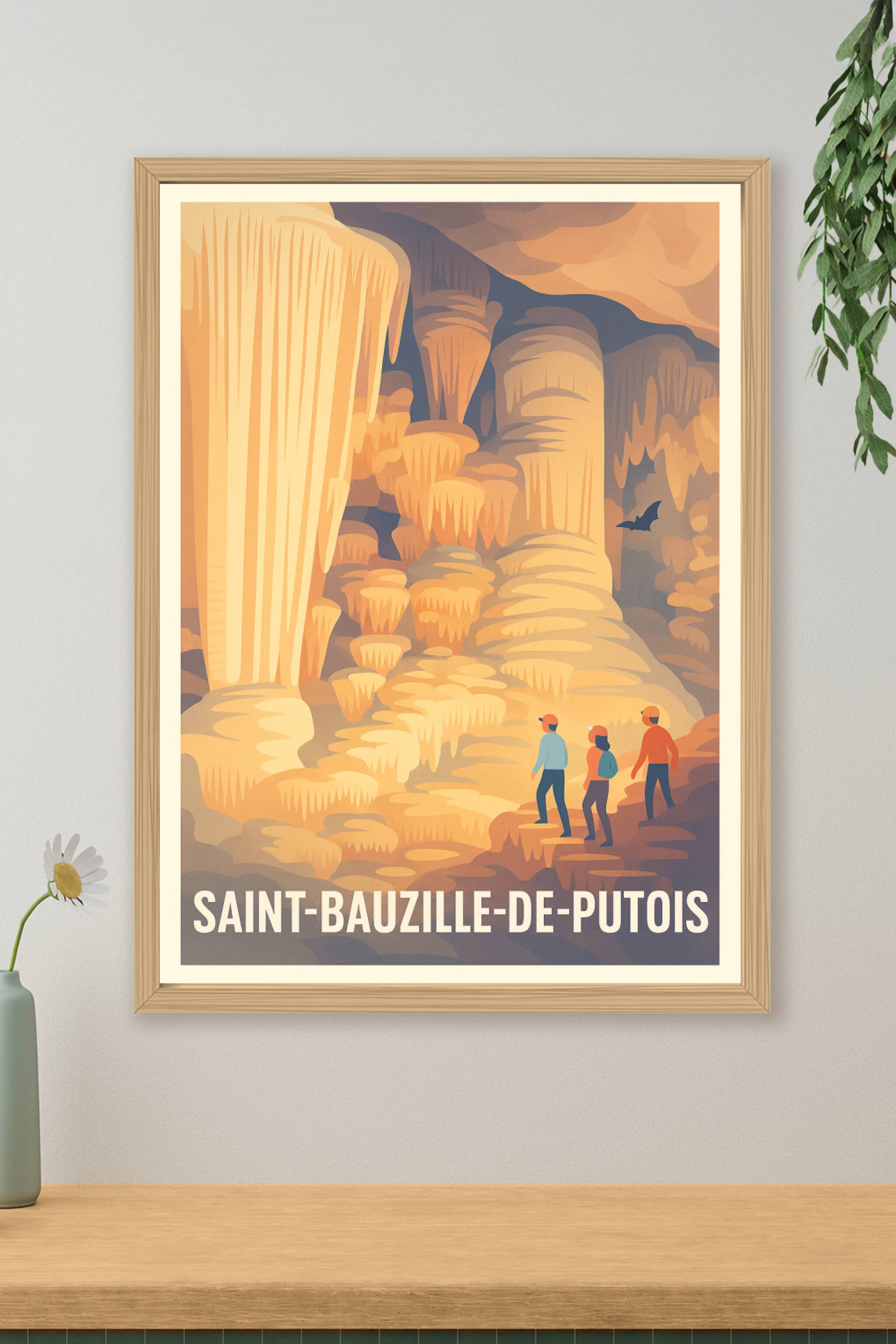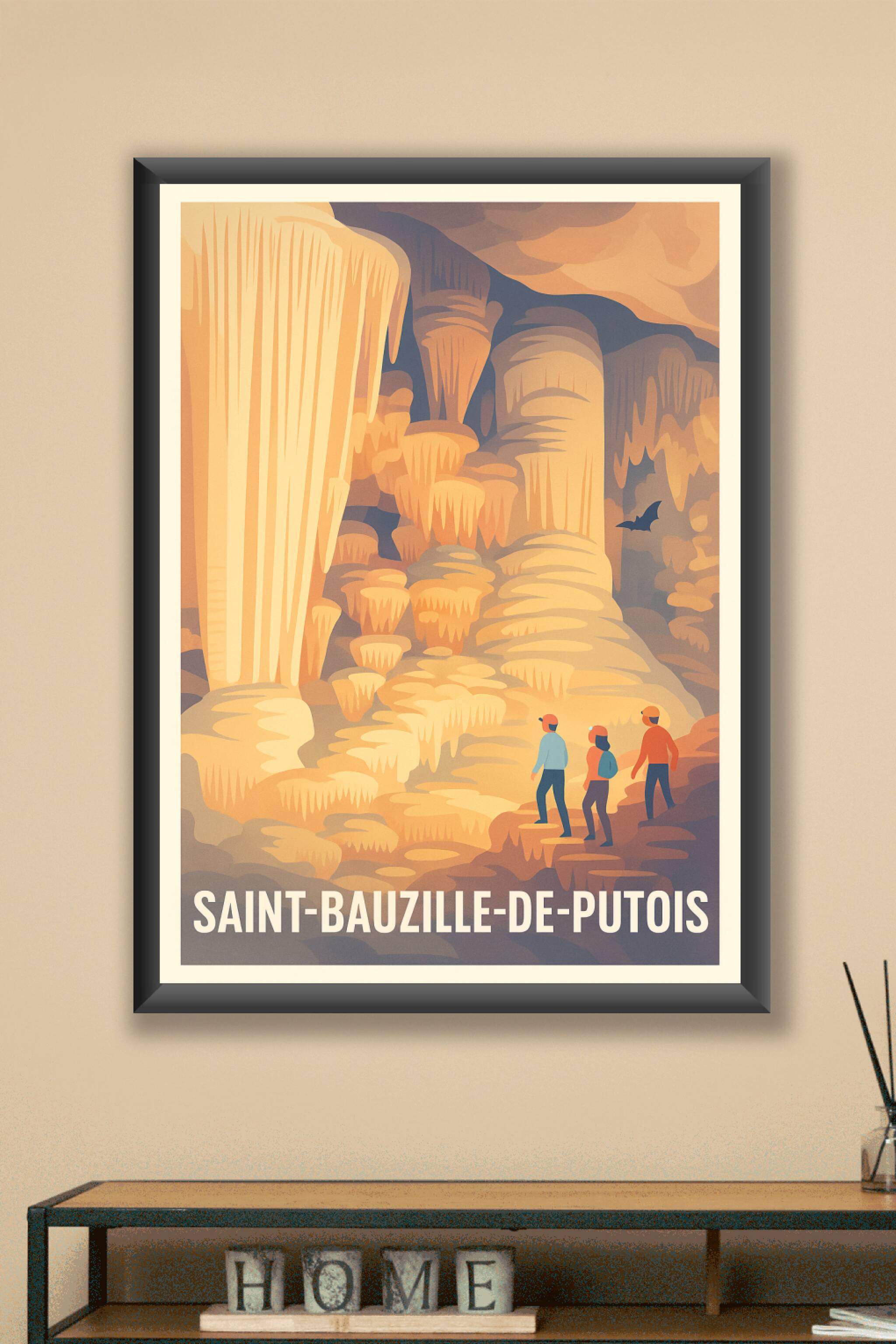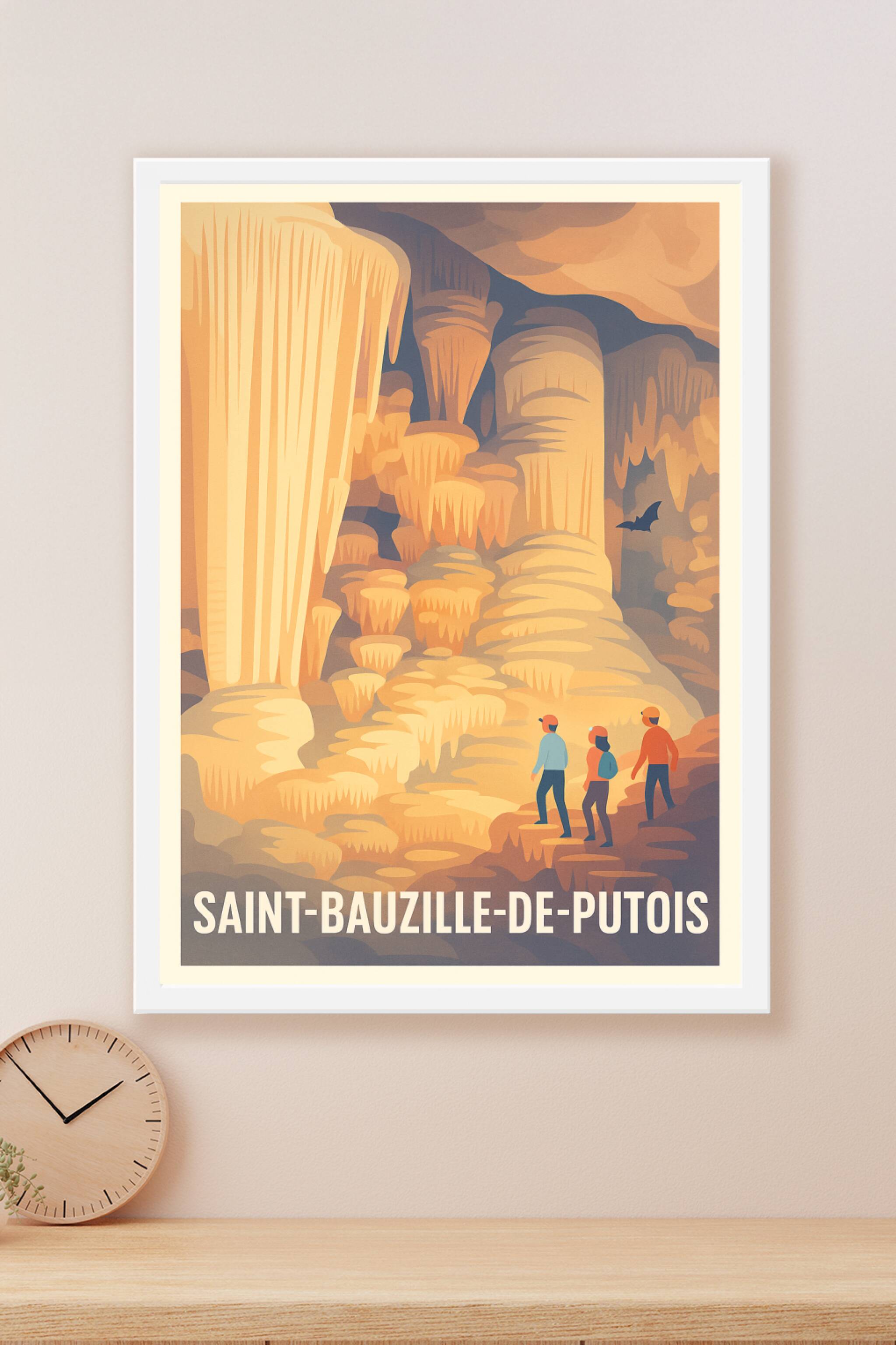 Découvrez la magie des grottes de Saint-Bauzille-de-Putois avec cette affiche vintage qui capture l'atmosphère mystérieuse et spectaculaire de ses ...