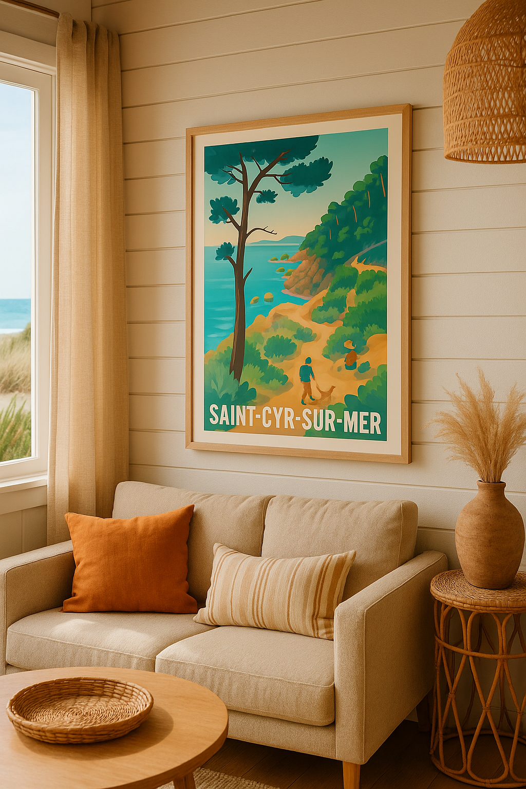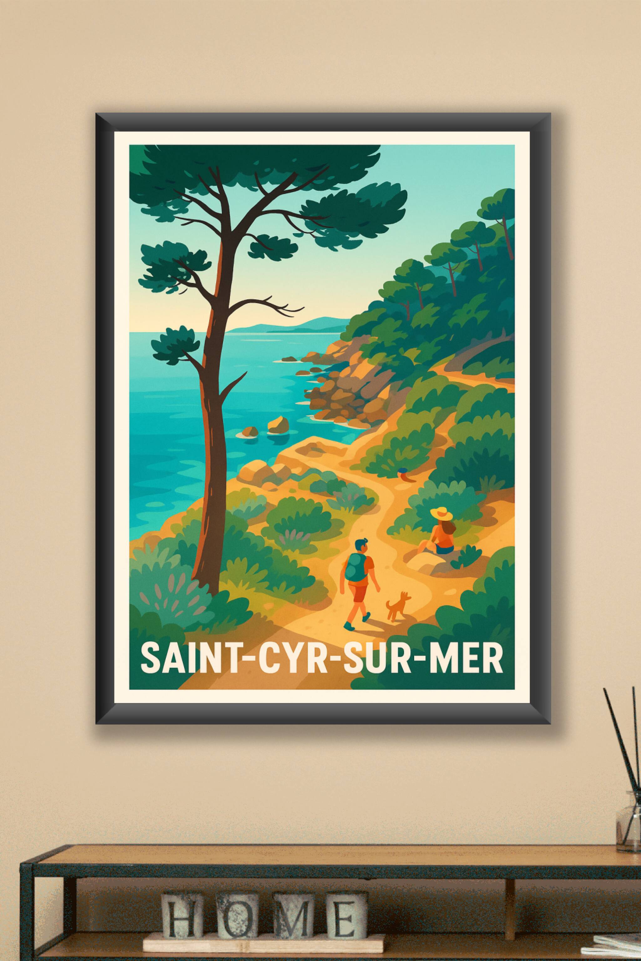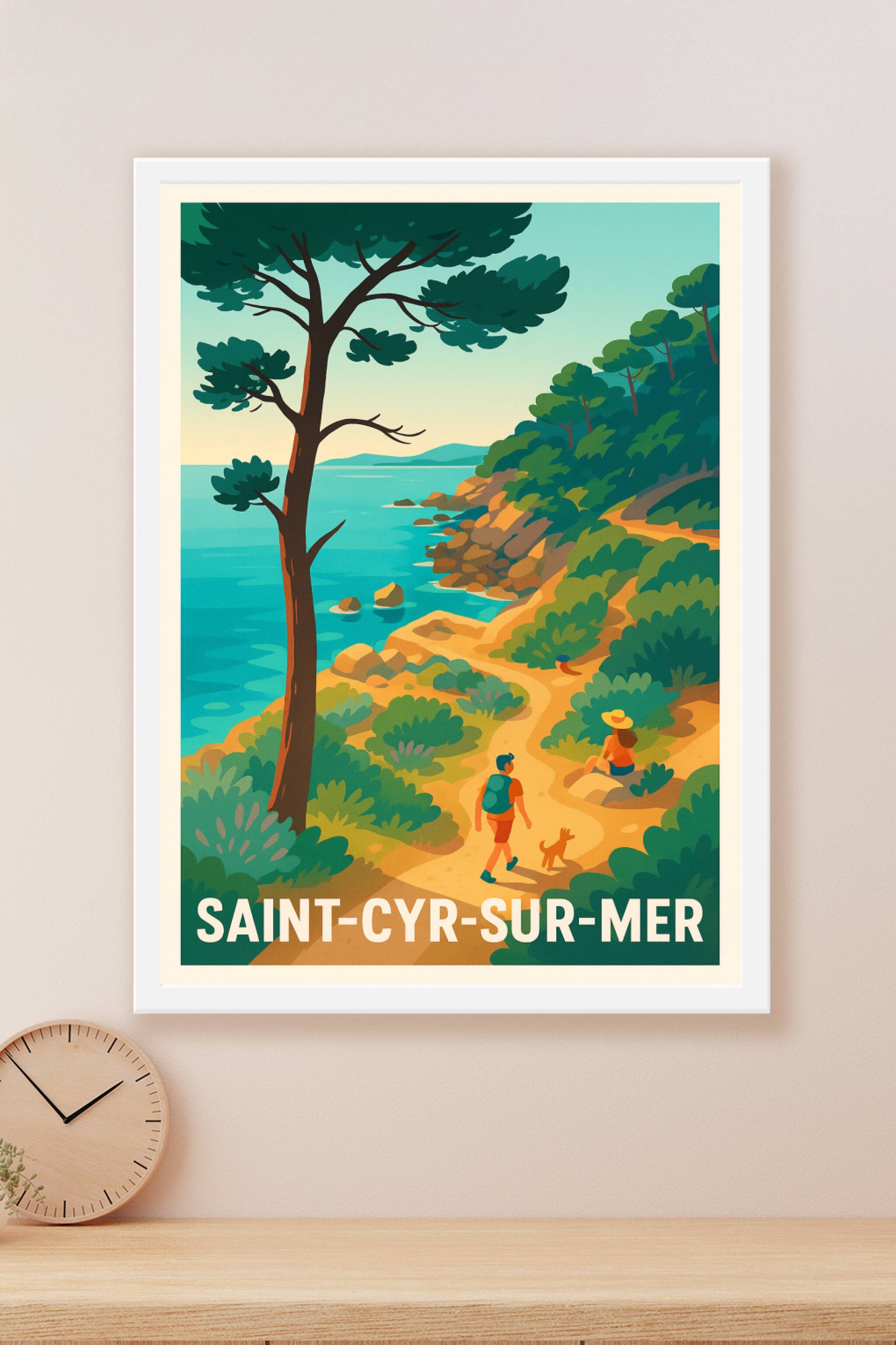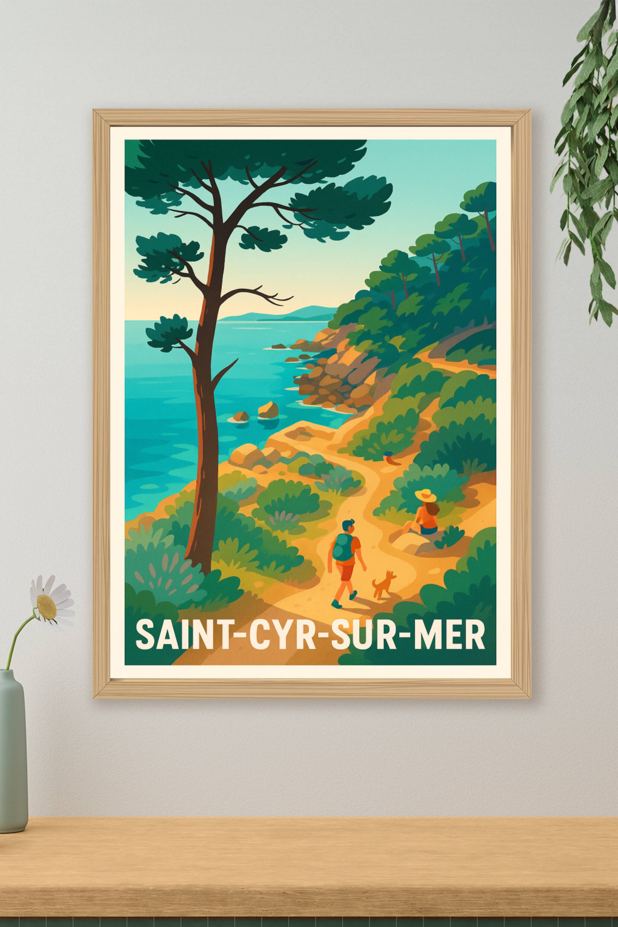 Laissez-vous séduire par cette affiche aux couleurs chaudes et apaisantes qui capture la beauté naturelle des sentiers côtiers de Saint-Cyr-sur-Mer...