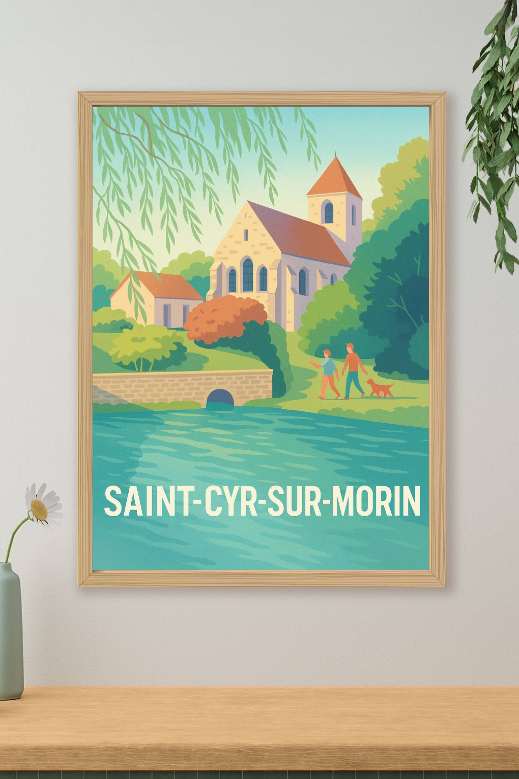 Découvrez la sérénité et la beauté intemporelle de Saint-Cyr-sur-Morin avec cette affiche illustrée pleine de douceur et de verdure. Un village pai...