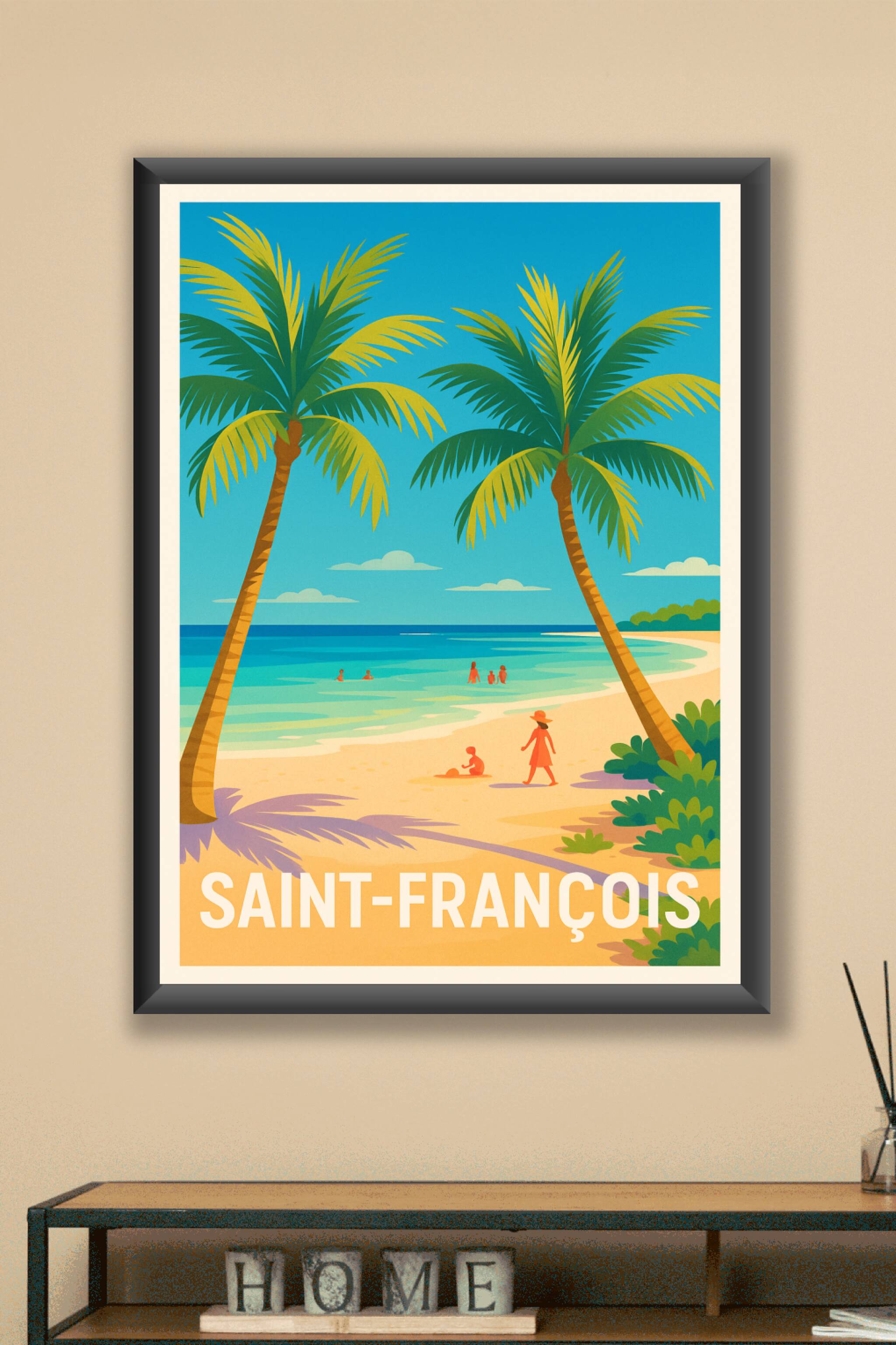 Offrez-vous une pause détente avec ce poster vibrant qui capture l'essence paradisiaque de Saint-François, entre palmiers majestueux et plages aux ...
