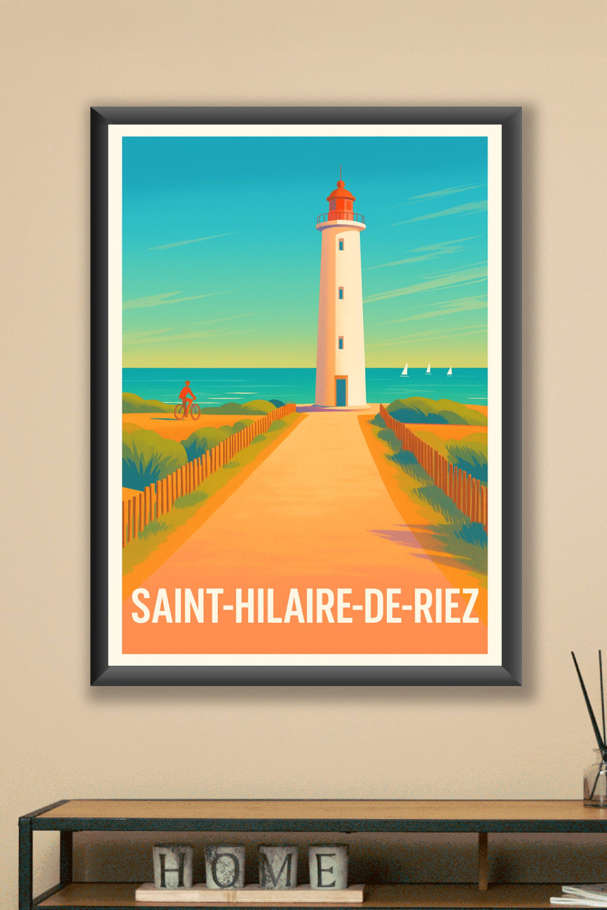 Découvrez l'élégance intemporelle de la côte vendéenne avec cette affiche représentant le phare emblématique de Saint-Hilaire-de-Riez. Ce poster ca...