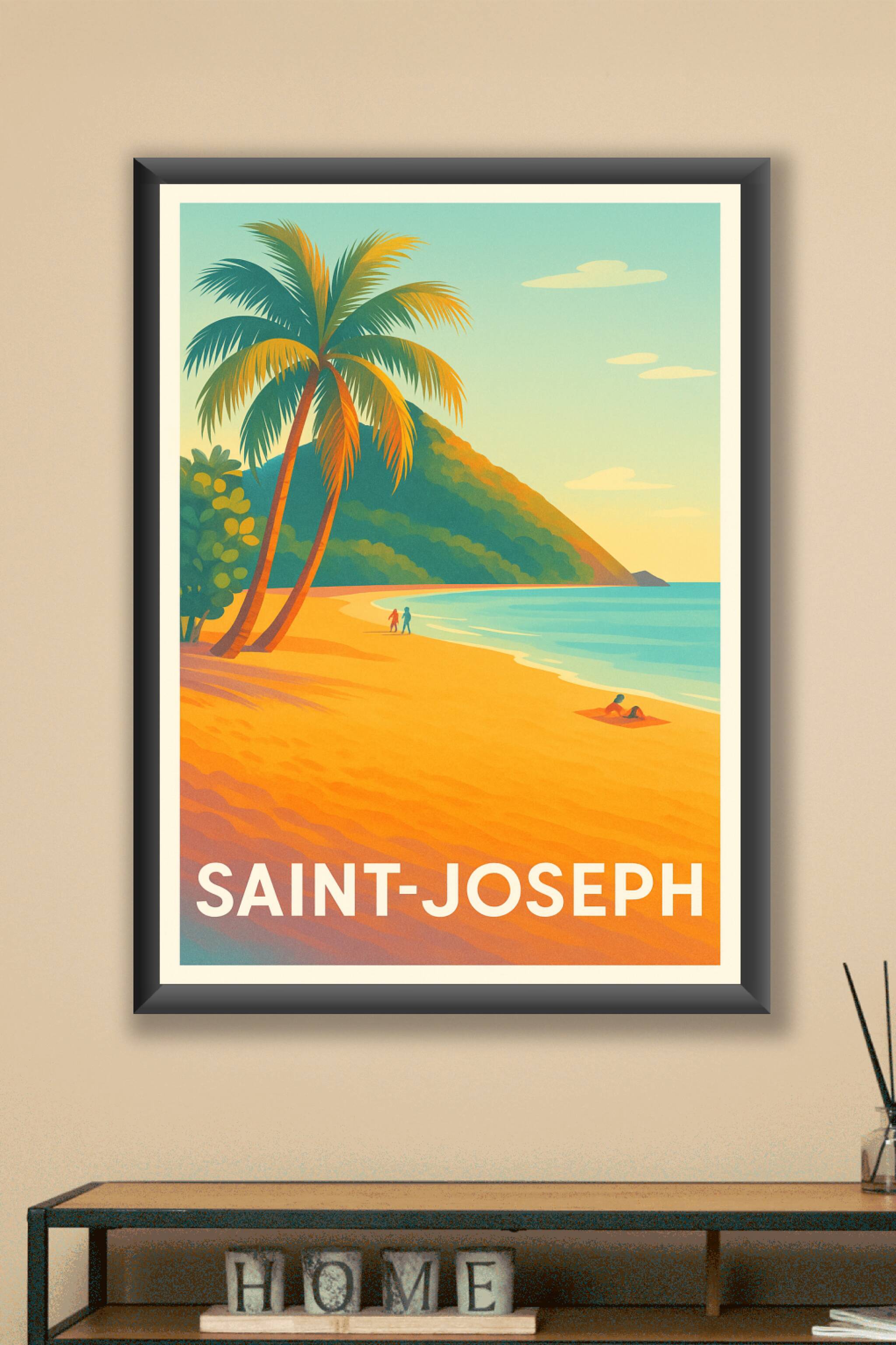 Découvrez l'atmosphère paisible et ensoleillée de Saint-Joseph avec cette affiche illustrée aux couleurs chaudes et vibrantes. Le poster met en scè...