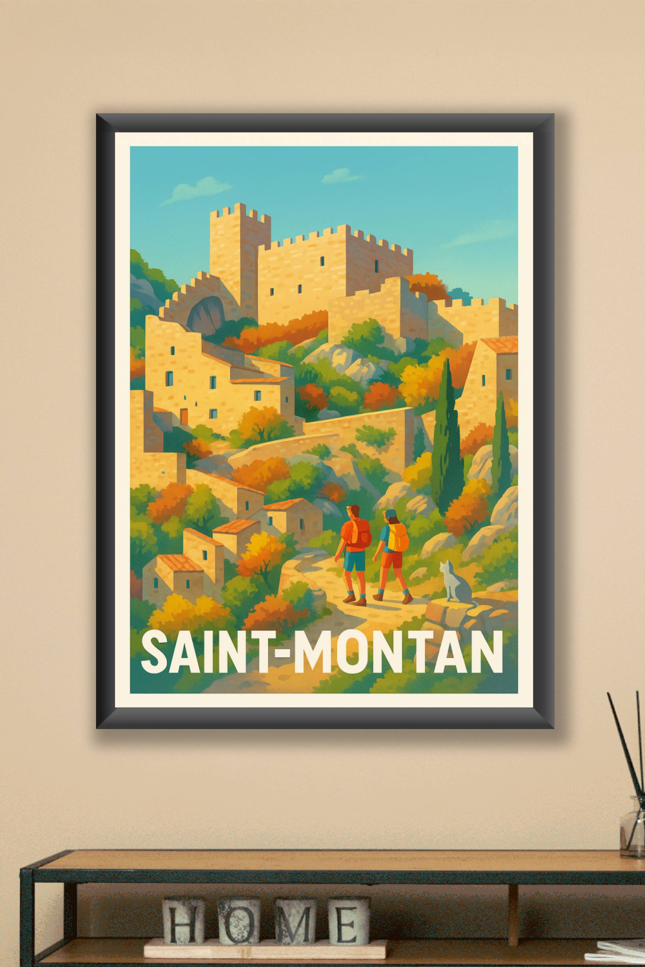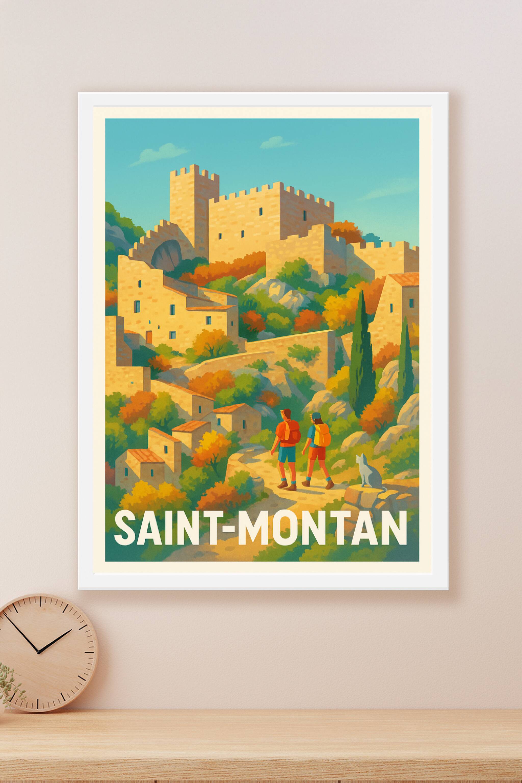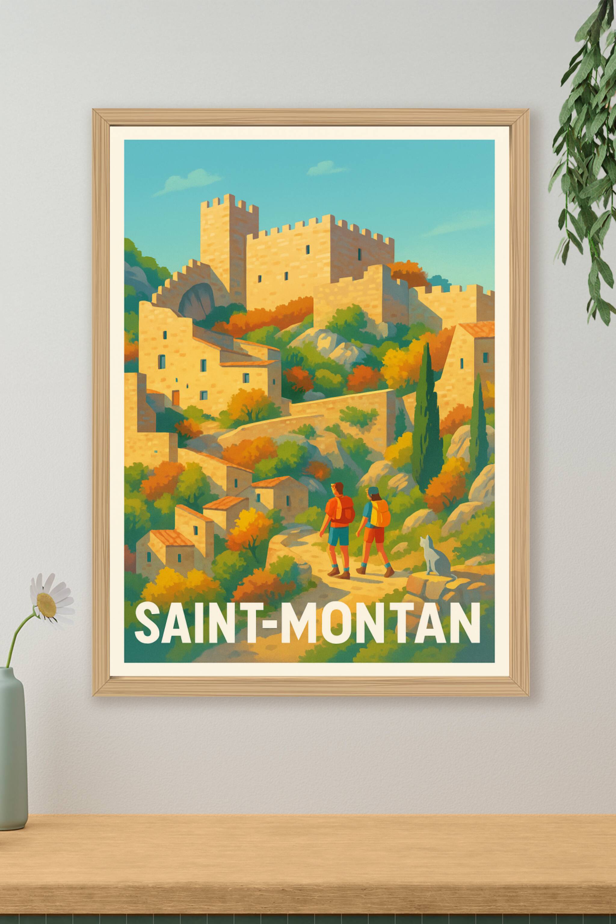 Découvrez la beauté intemporelle de Saint-Montan avec cette affiche illustrée capturant l'âme médiévale du village et ses paysages colorés. Partez ...