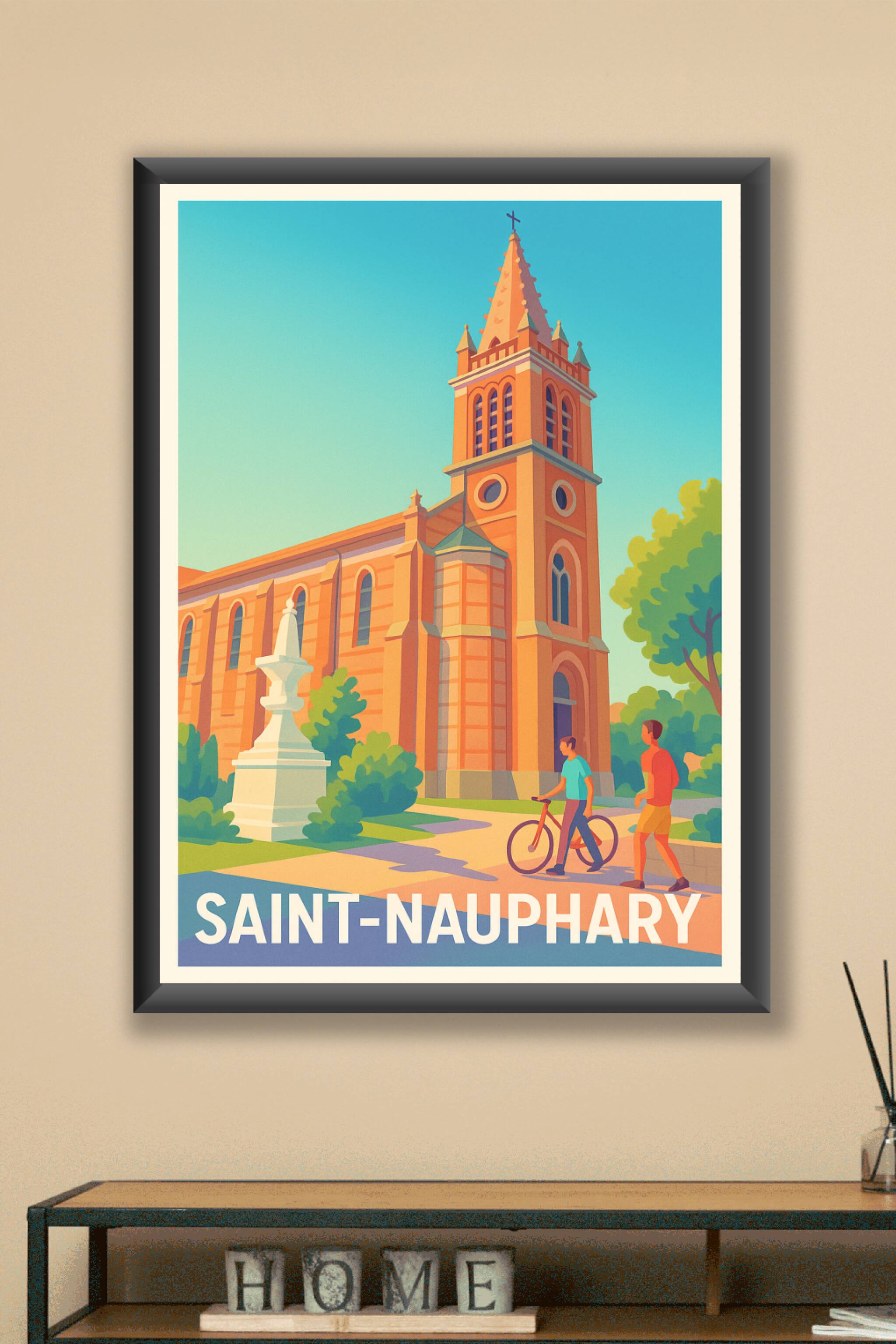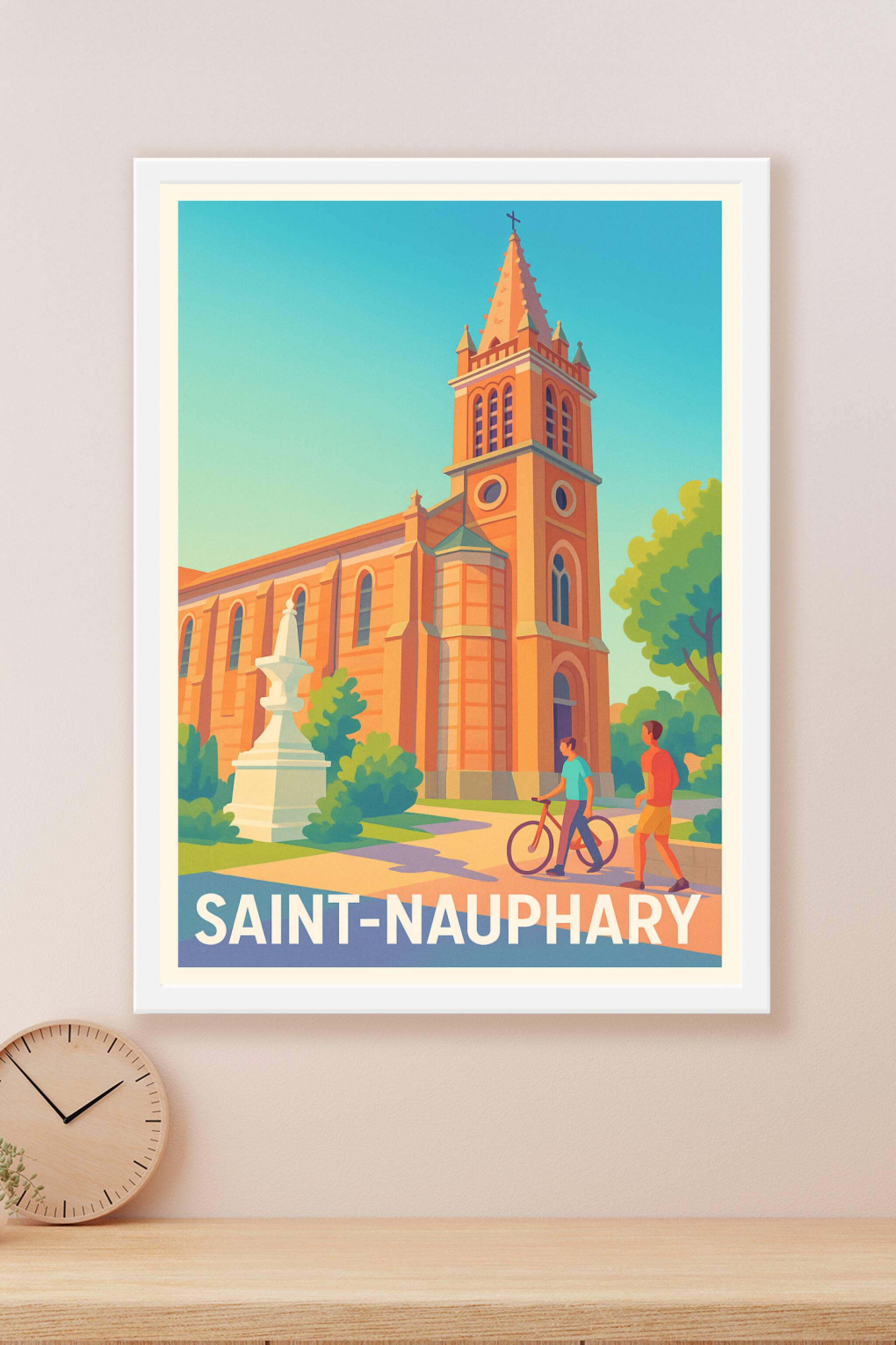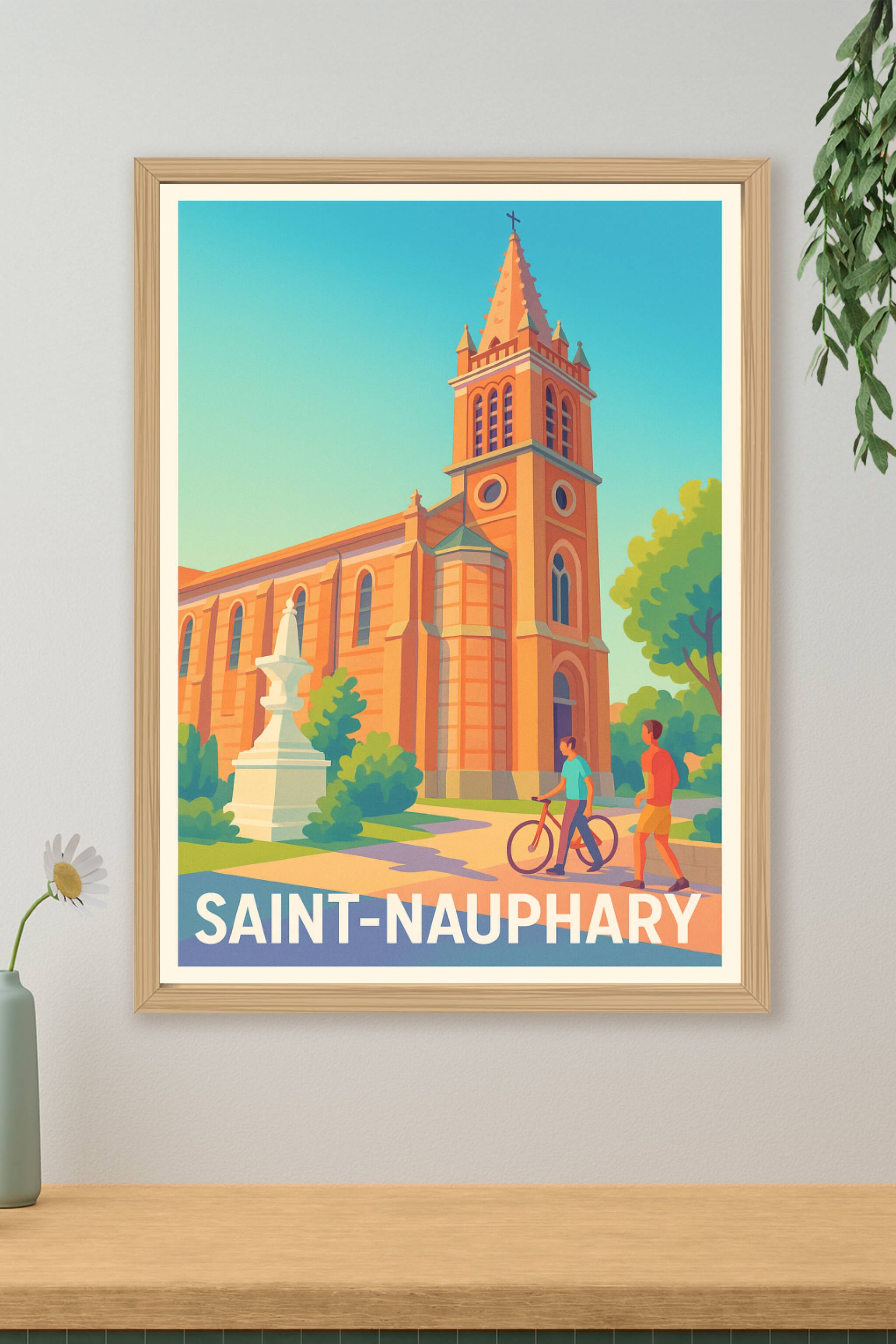 Découvrez l'élégance intemporelle de Saint-Nauphary à travers cette affiche illustrée qui capture l'architecture majestueuse et le charme paisible ...