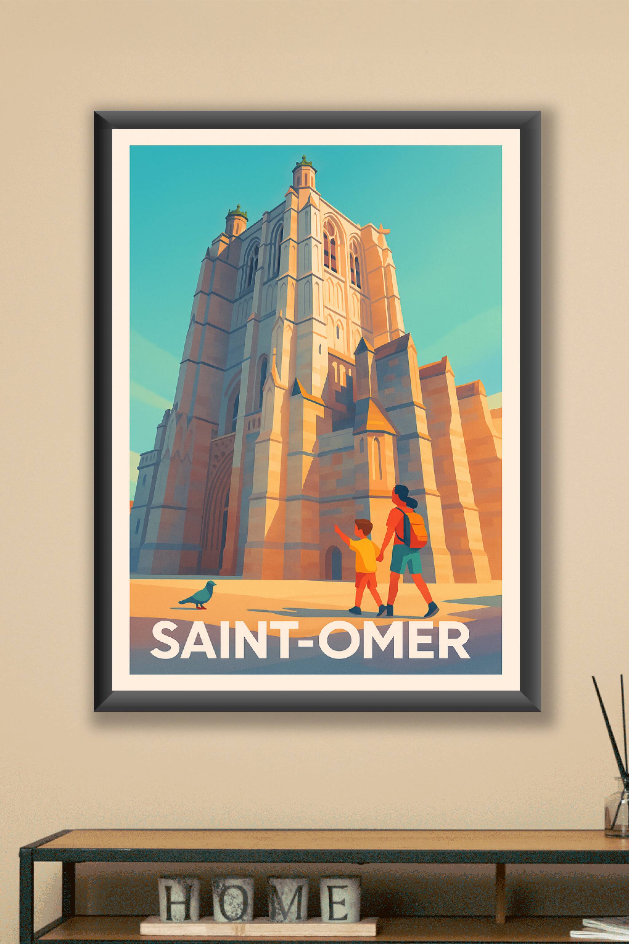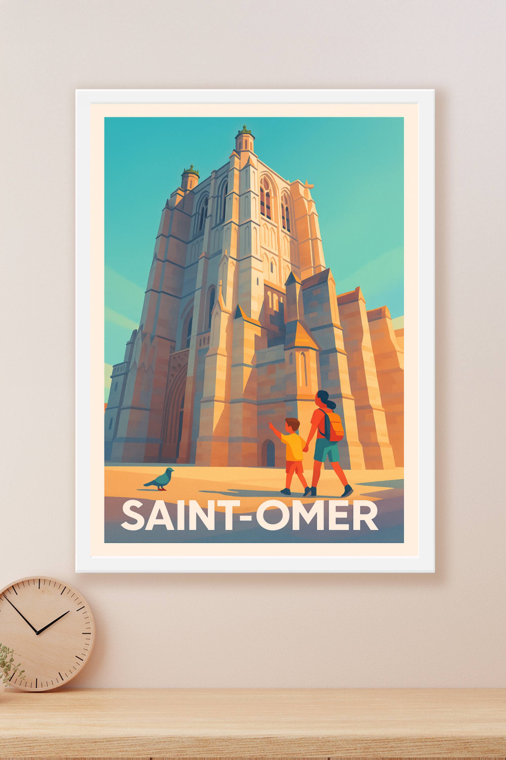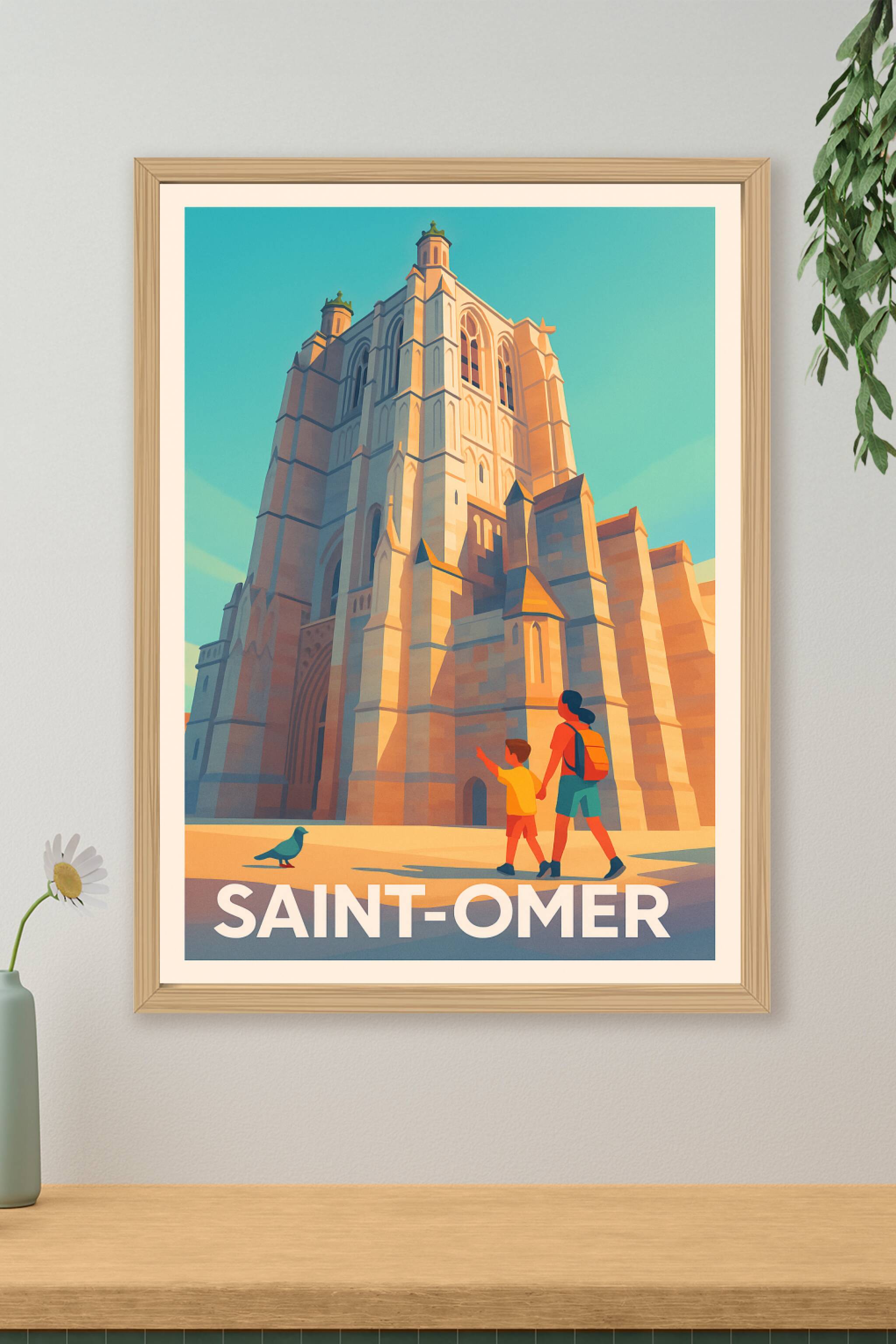 Découvrez la majesté de la Cathédrale de Saint-Omer à travers cette affiche illustrée aux couleurs douces et chaleureuses. Ce poster capture un instant de découverte entre un enfant et un adulte, symbolisant la richesse historique et architecturale de cette ville du Nord de la France. Imprimé en tirage "Fine Art" sur papier 305g coton, il garantit une qualité d'impression exceptionnelle, idéale pour sublimer votre décoration intérieure. Disponible en plusieurs formats, du A1 au A4, avec ou sans cadre, ce poster Saint-Omer est parfait pour apporter une touche culturelle et élégante à votre espace ou pour offrir un souvenir unique et raffiné.
