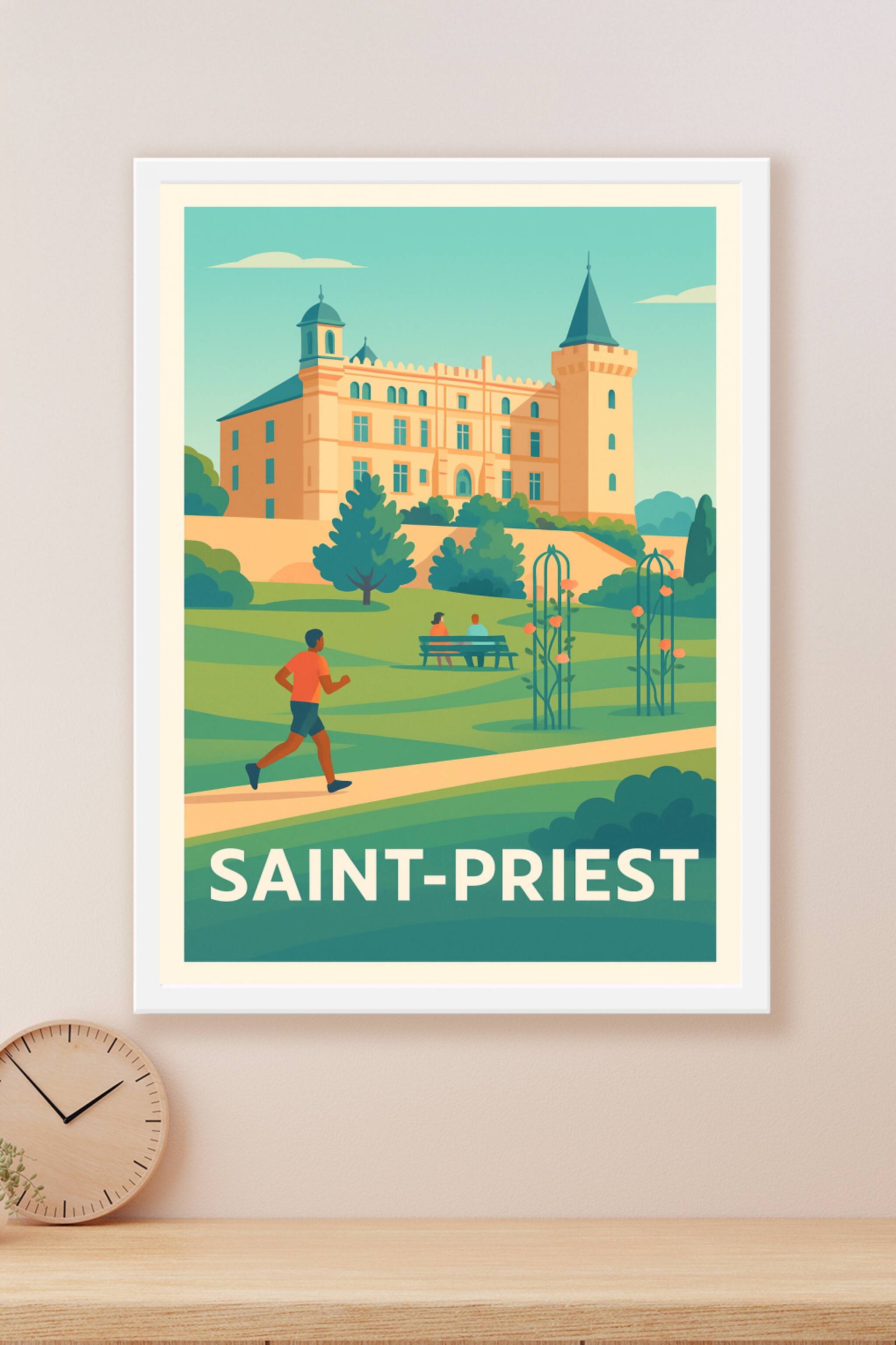 Affiche Saint-Priest - Évasion au Château et Parc Ensoleillé