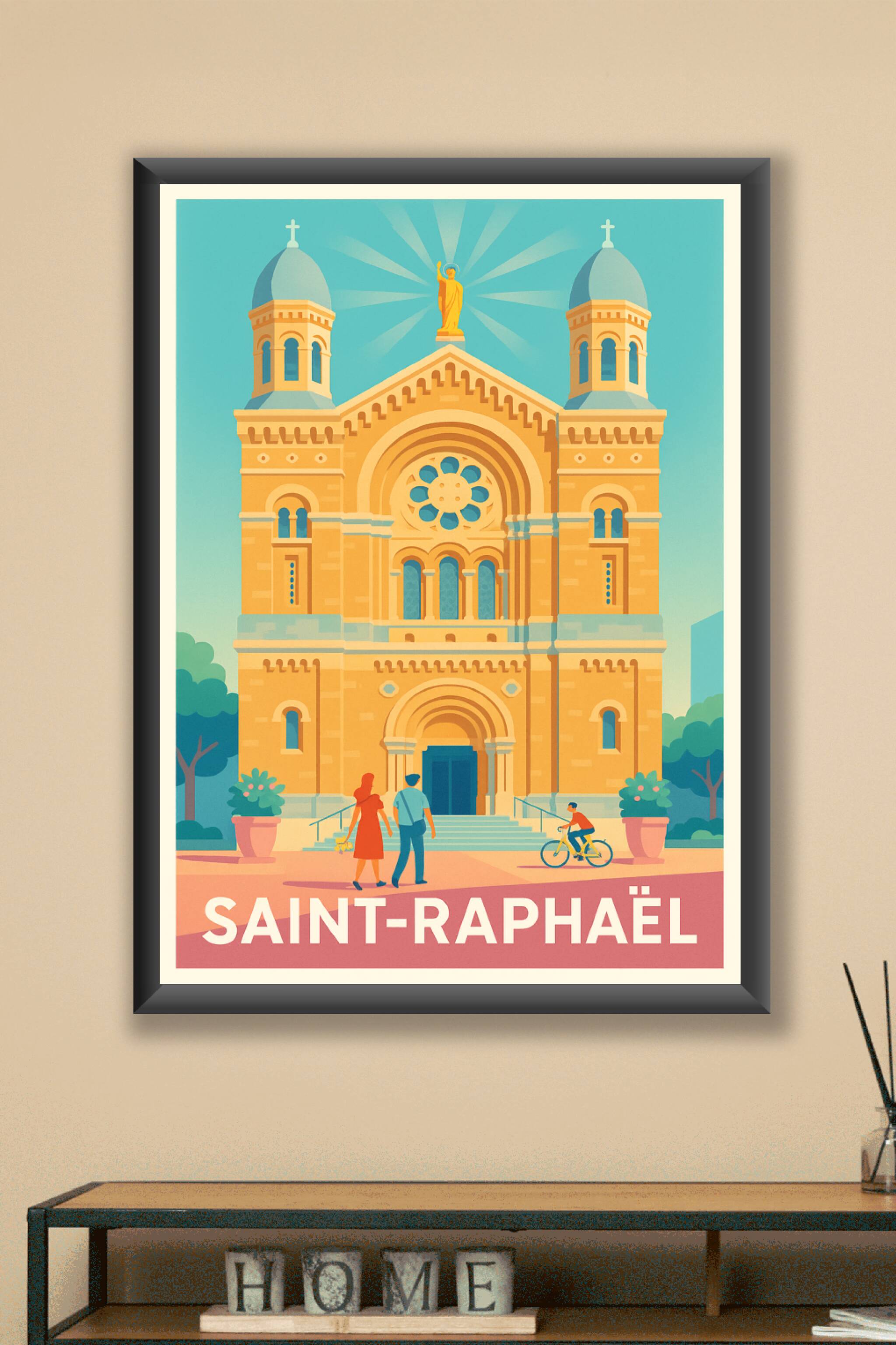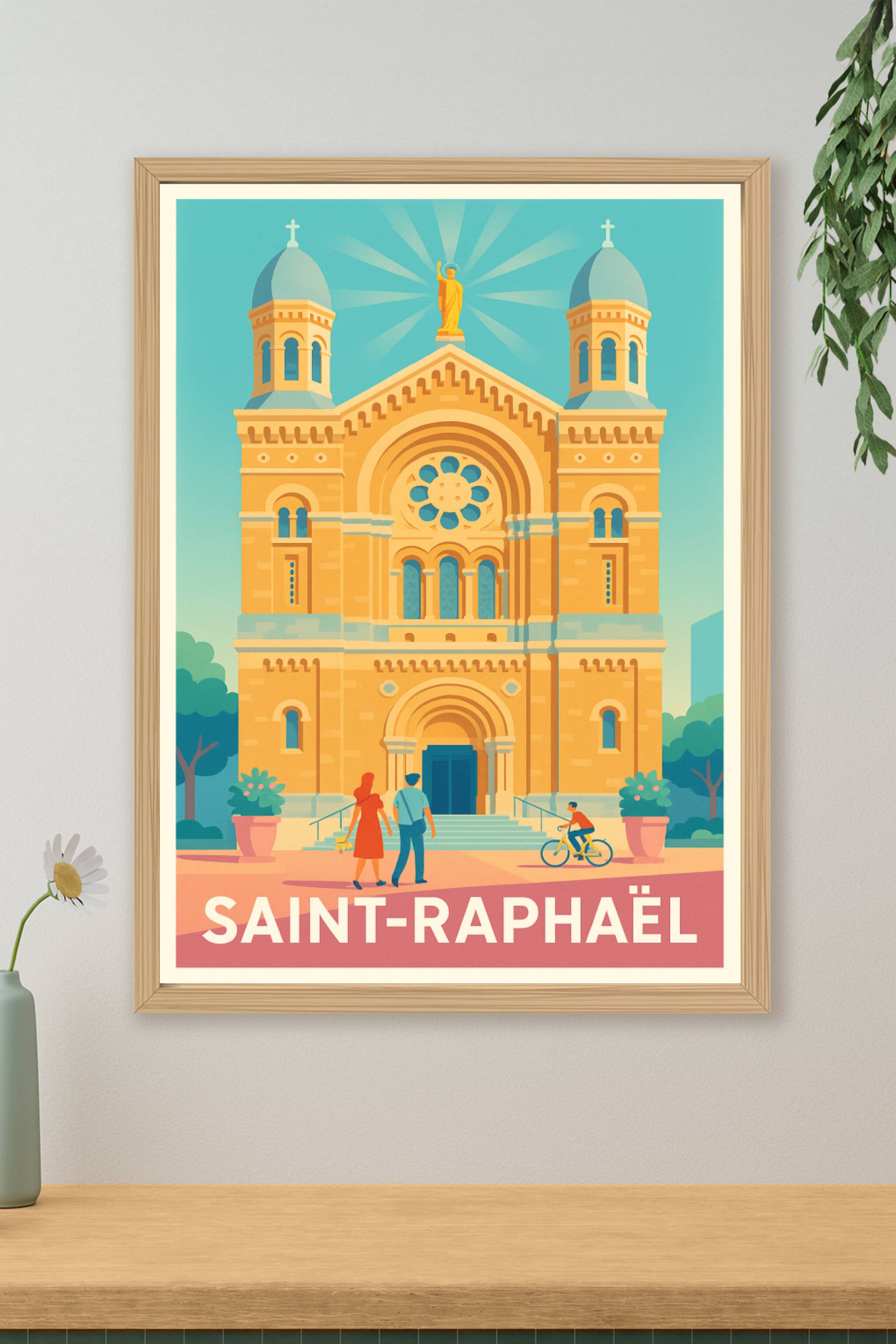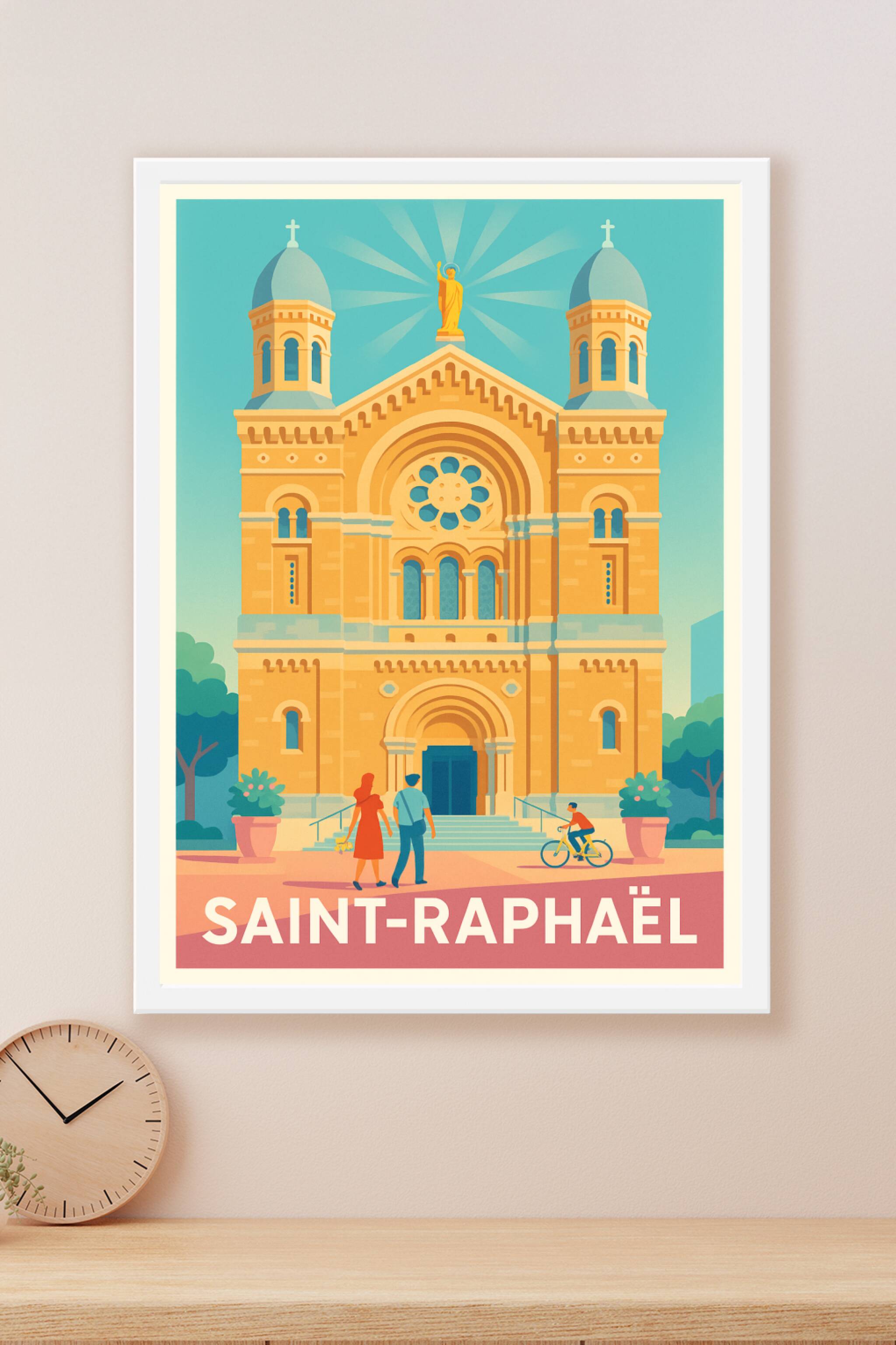 Découvrez l'élégance intemporelle de Saint-Raphaël avec cette affiche illustrée mettant en scène son architecture emblématique baignée de lumière. ...
