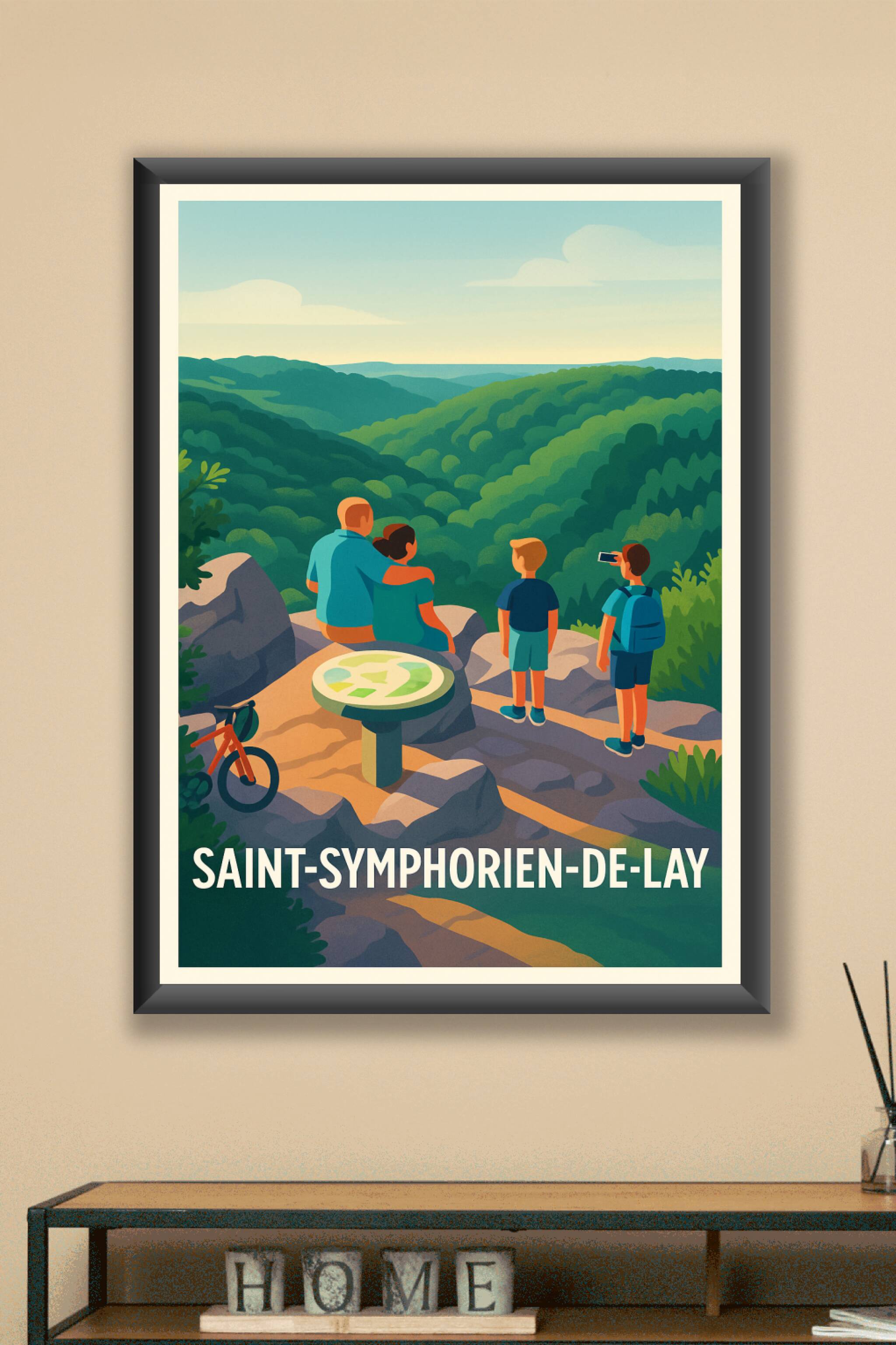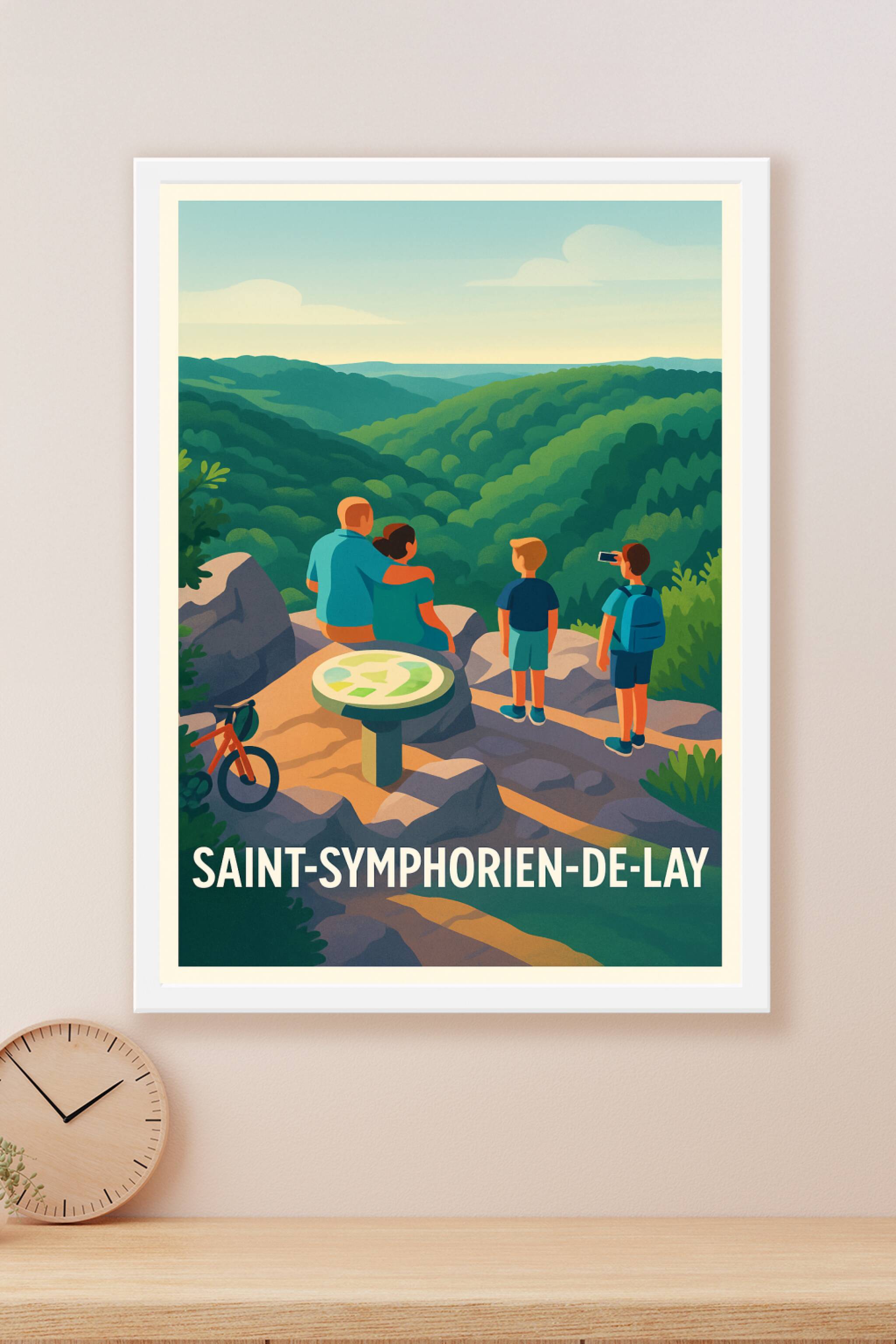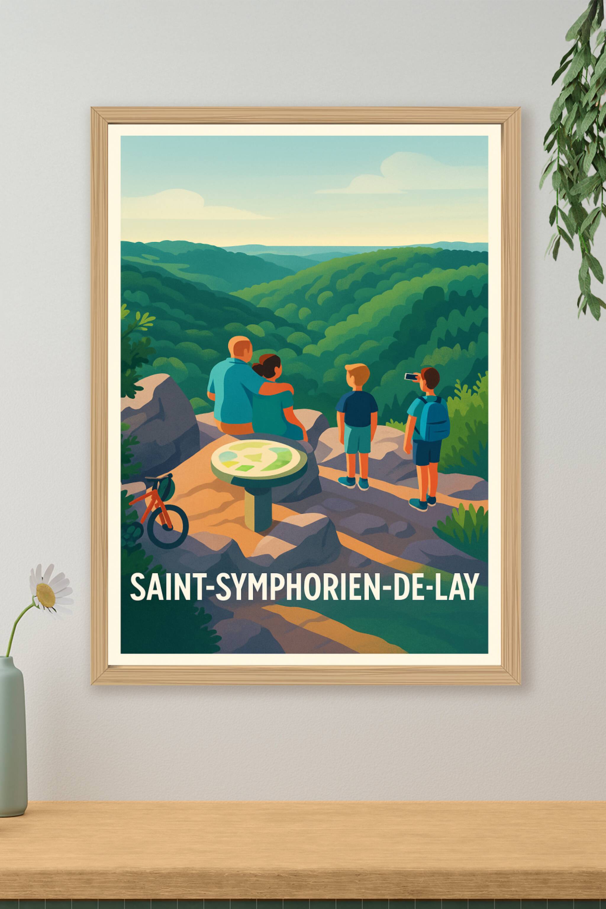 Offrez-vous une pause ressourçante au cœur des paysages verdoyants de Saint-Symphorien-de-Lay avec cette affiche illustrée pleine de douceur et de sérénité. Le poster met en scène une famille admirant la beauté des vallées boisées depuis un belvédère, une invitation à la découverte et à la détente en plein air. Imprimé en tirage "Fine Art" sur papier 305g coton, ce poster bénéficie d'une qualité d'impression exceptionnelle qui garantit des couleurs profondes et une durabilité optimale. Disponible en formats A1 à A4, avec ou sans cadre, cette affiche est parfaite pour sublimer votre intérieur ou pour offrir un souvenir authentique de la région. 100% fabriquée en France, elle allie art et savoir-faire pour un rendu raffiné et élégant.